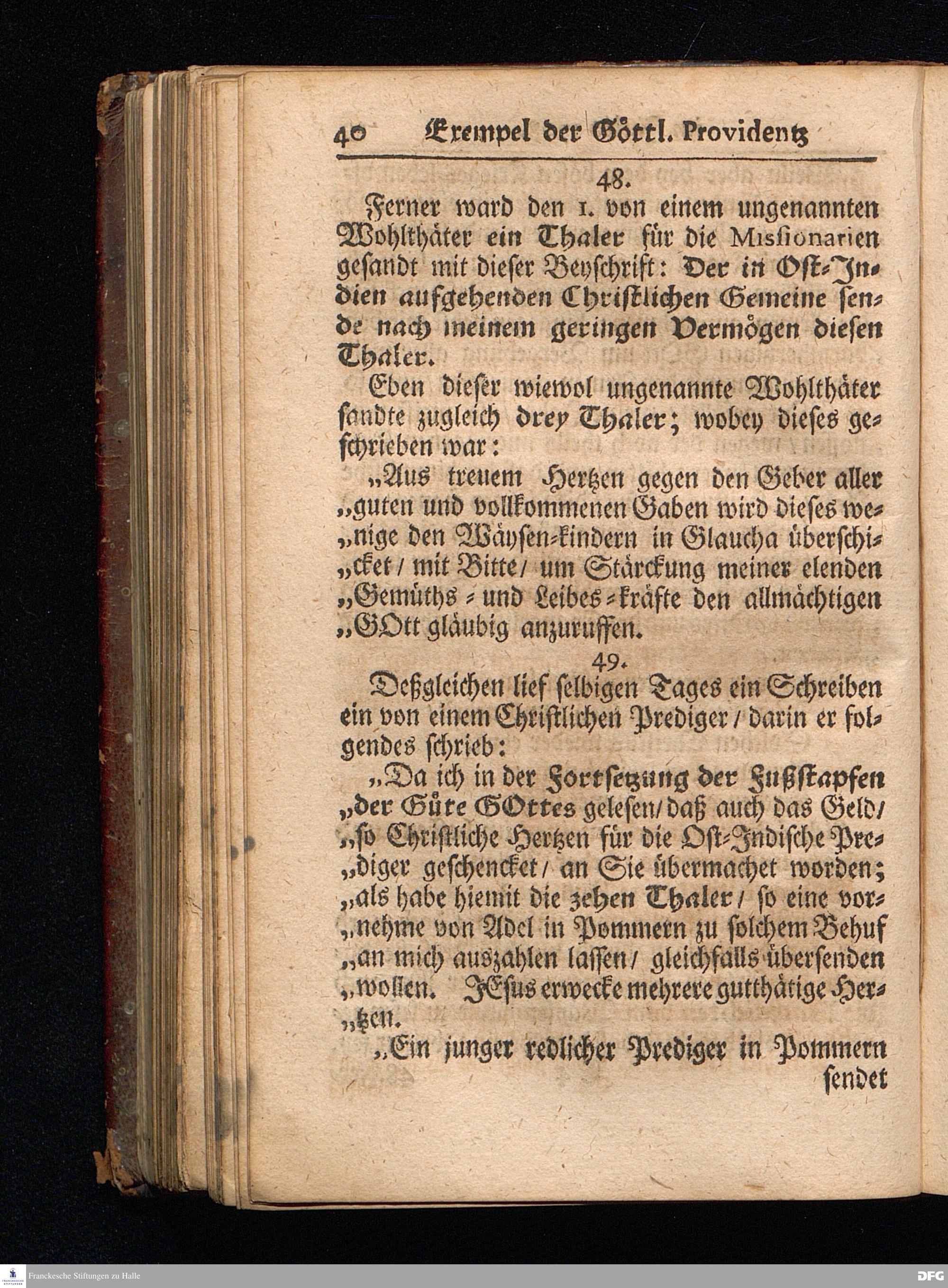 Segens=volle Fußstapfen des noch lebenden und waltenden liebreichen und getreuen GOttes / Zur Beschämung des Unglaubens und Stärckung des Glaubens entdecket durch eine wahrhafte und umständliche Nachricht von dem Wäysen=Hause und übrigen Anstalten zu Glaucha vor Halle: Welche im Jahr 1701. zum Druck befördert; ietzo aber zum dritten mal ediret / und bis auf gegenwärtiges Jahr fortgesetzet von August.Herm.Francken / S.Theol.Prof.und Past. Halle / in Verlegung des Wäysen=hauses / MDCCIX.