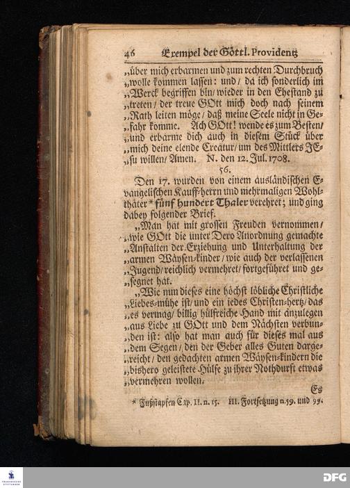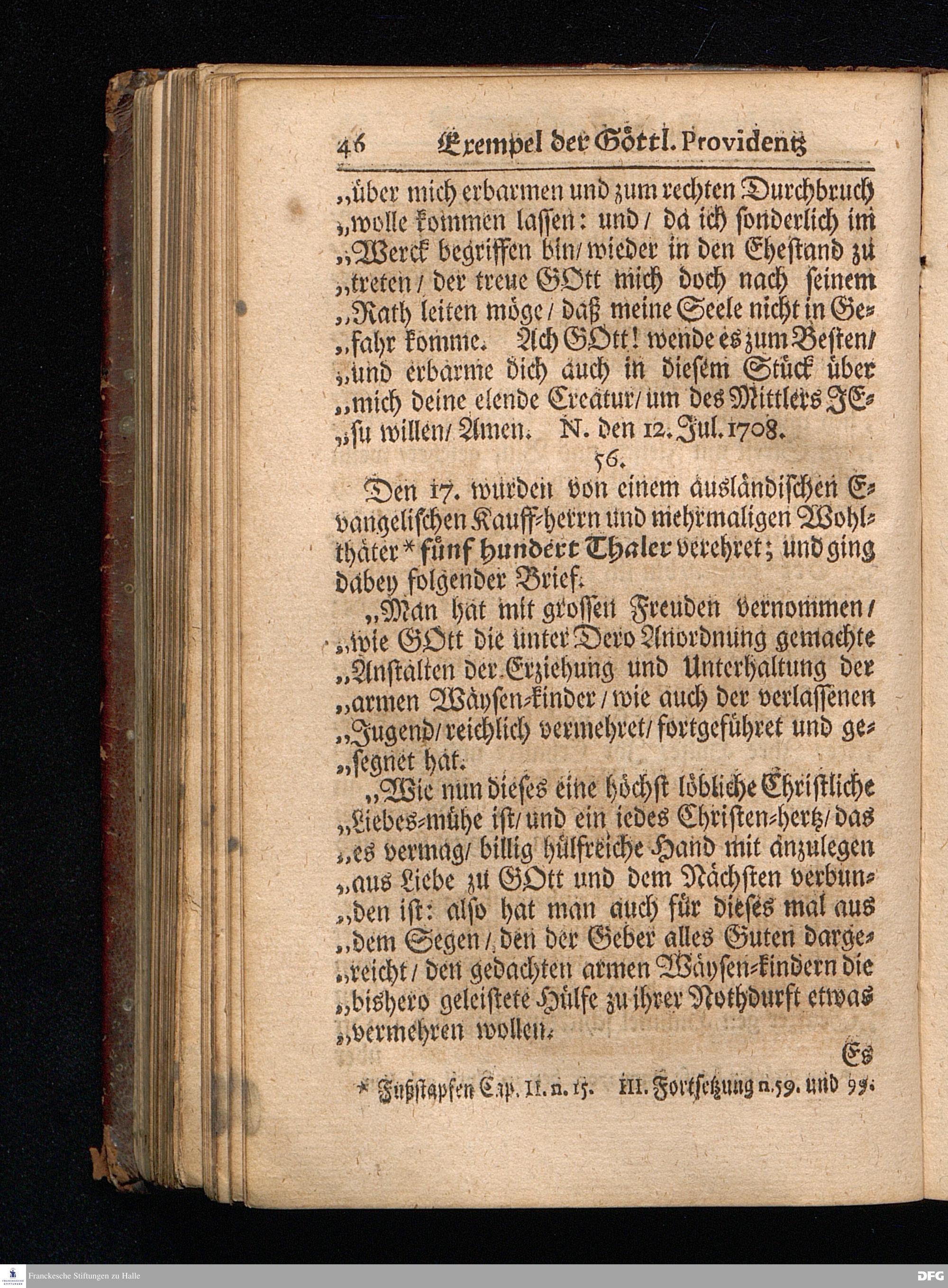 Segens=volle Fußstapfen des noch lebenden und waltenden liebreichen und getreuen GOttes / Zur Beschämung des Unglaubens und Stärckung des Glaubens entdecket durch eine wahrhafte und umständliche Nachricht von dem Wäysen=Hause und übrigen Anstalten zu Glaucha vor Halle: Welche im Jahr 1701. zum Druck befördert; ietzo aber zum dritten mal ediret / und bis auf gegenwärtiges Jahr fortgesetzet von August.Herm.Francken / S.Theol.Prof.und Past. Halle / in Verlegung des Wäysen=hauses / MDCCIX.