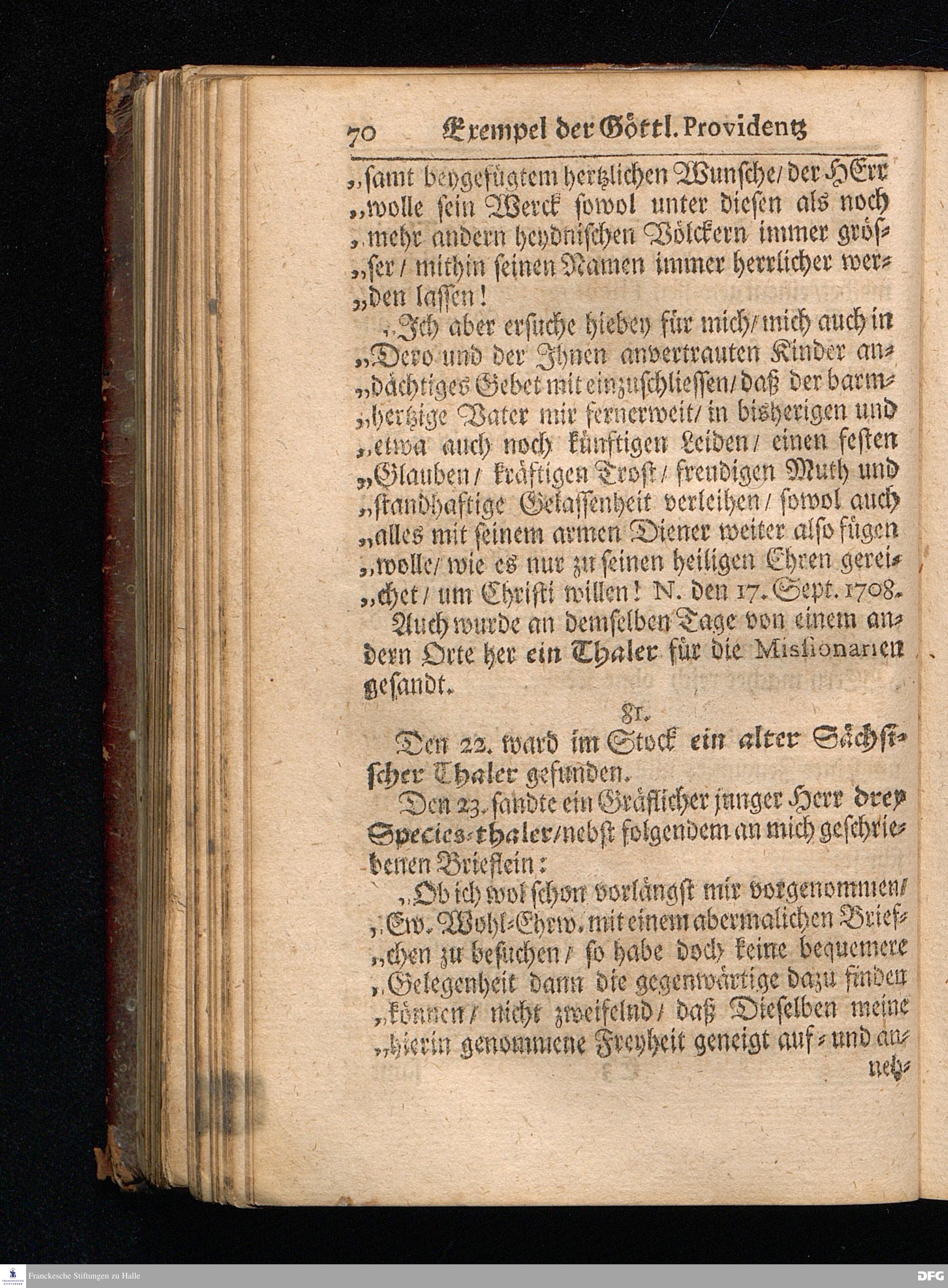 Segens=volle Fußstapfen des noch lebenden und waltenden liebreichen und getreuen GOttes / Zur Beschämung des Unglaubens und Stärckung des Glaubens entdecket durch eine wahrhafte und umständliche Nachricht von dem Wäysen=Hause und übrigen Anstalten zu Glaucha vor Halle: Welche im Jahr 1701. zum Druck befördert; ietzo aber zum dritten mal ediret / und bis auf gegenwärtiges Jahr fortgesetzet von August.Herm.Francken / S.Theol.Prof.und Past. Halle / in Verlegung des Wäysen=hauses / MDCCIX.