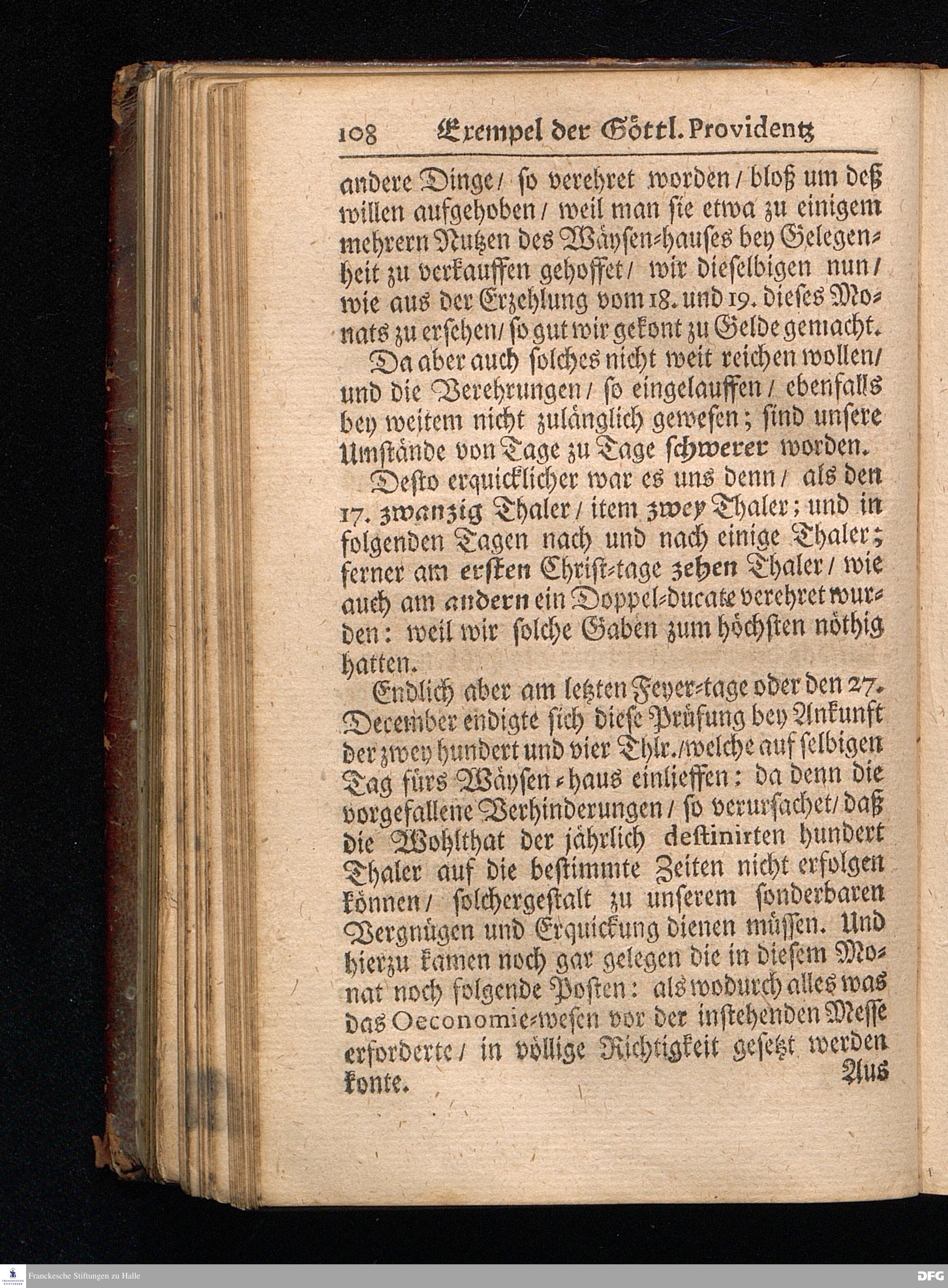 Segens=volle Fußstapfen des noch lebenden und waltenden liebreichen und getreuen GOttes / Zur Beschämung des Unglaubens und Stärckung des Glaubens entdecket durch eine wahrhafte und umständliche Nachricht von dem Wäysen=Hause und übrigen Anstalten zu Glaucha vor Halle: Welche im Jahr 1701. zum Druck befördert; ietzo aber zum dritten mal ediret / und bis auf gegenwärtiges Jahr fortgesetzet von August.Herm.Francken / S.Theol.Prof.und Past. Halle / in Verlegung des Wäysen=hauses / MDCCIX.
