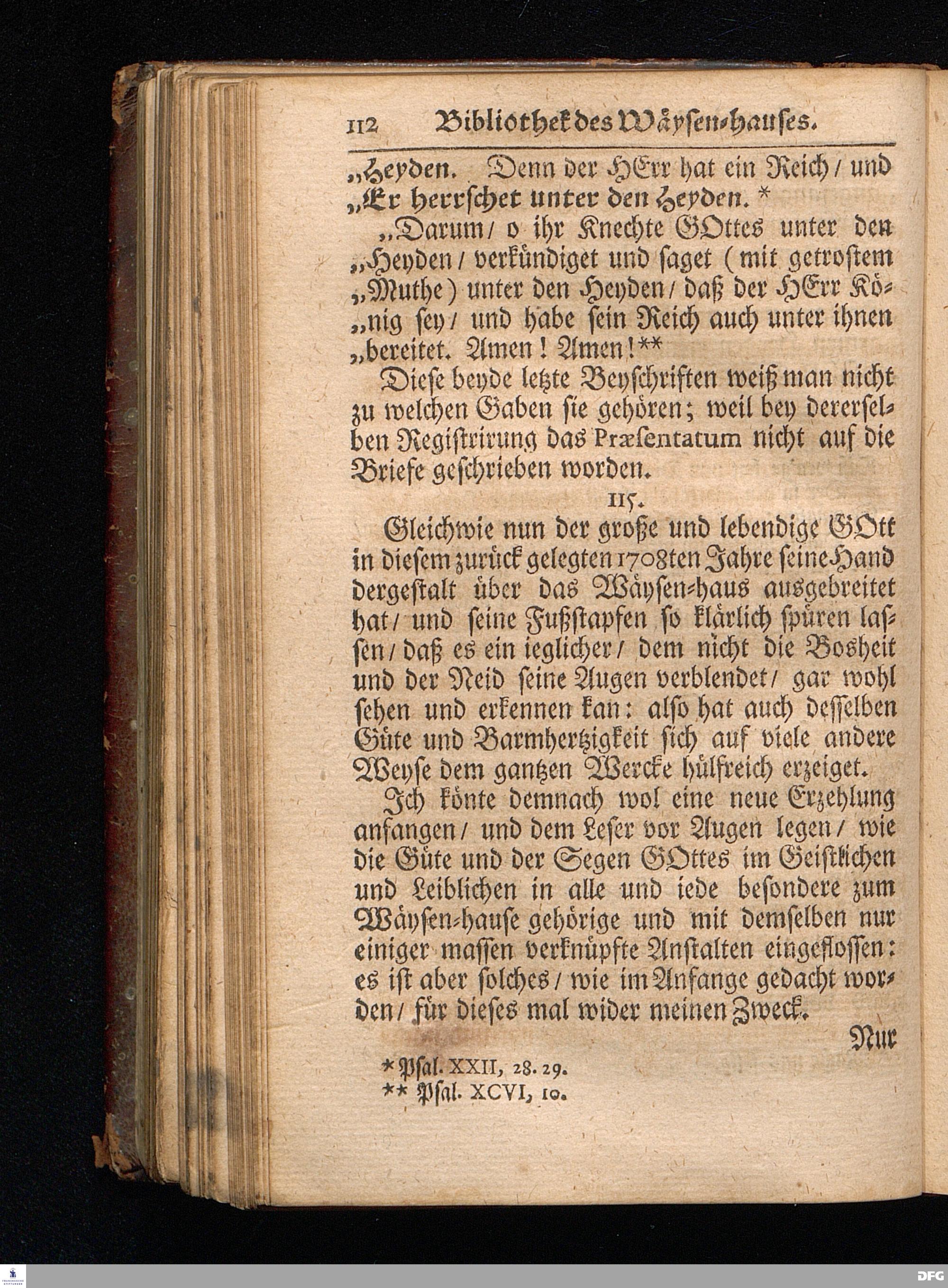 Segens=volle Fußstapfen des noch lebenden und waltenden liebreichen und getreuen GOttes / Zur Beschämung des Unglaubens und Stärckung des Glaubens entdecket durch eine wahrhafte und umständliche Nachricht von dem Wäysen=Hause und übrigen Anstalten zu Glaucha vor Halle: Welche im Jahr 1701. zum Druck befördert; ietzo aber zum dritten mal ediret / und bis auf gegenwärtiges Jahr fortgesetzet von August.Herm.Francken / S.Theol.Prof.und Past. Halle / in Verlegung des Wäysen=hauses / MDCCIX.
