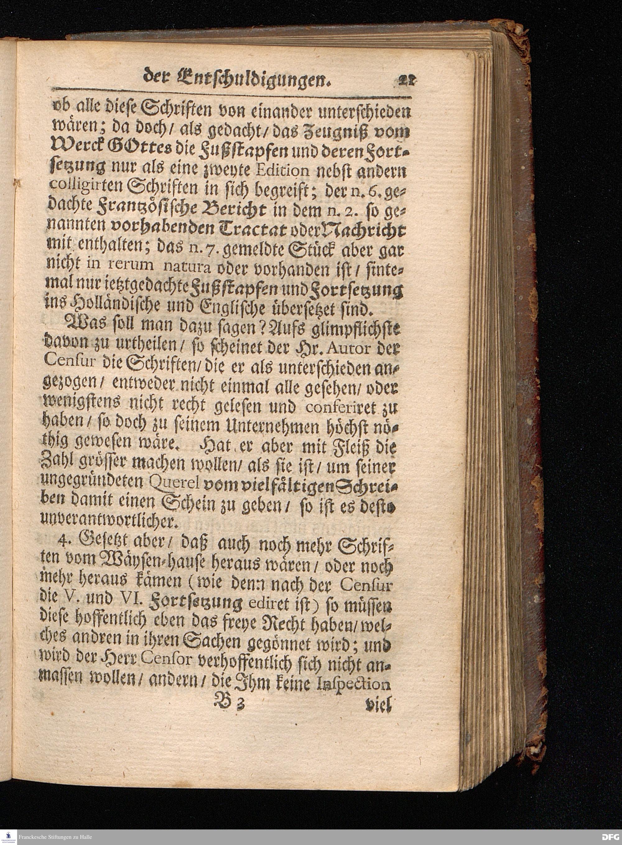 Segens=volle Fußstapfen des noch lebenden und waltenden liebreichen und getreuen GOttes / Zur Beschämung des Unglaubens und Stärckung des Glaubens entdecket durch eine wahrhafte und umständliche Nachricht von dem Wäysen=Hause und übrigen Anstalten zu Glaucha vor Halle: Welche im Jahr 1701. zum Druck befördert; ietzo aber zum dritten mal ediret / und bis auf gegenwärtiges Jahr fortgesetzet von August.Herm.Francken / S.Theol.Prof.und Past. Halle / in Verlegung des Wäysen=hauses / MDCCIX.