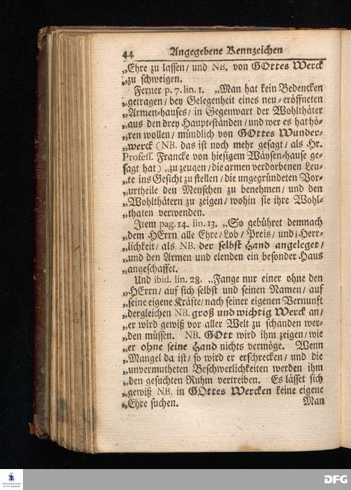 Segens=volle Fußstapfen des noch lebenden und waltenden liebreichen und getreuen GOttes / Zur Beschämung des Unglaubens und Stärckung des Glaubens entdecket durch eine wahrhafte und umständliche Nachricht von dem Wäysen=Hause und übrigen Anstalten zu Glaucha vor Halle: Welche im Jahr 1701. zum Druck befördert; ietzo aber zum dritten mal ediret / und bis auf gegenwärtiges Jahr fortgesetzet von August.Herm.Francken / S.Theol.Prof.und Past. Halle / in Verlegung des Wäysen=hauses / MDCCIX.