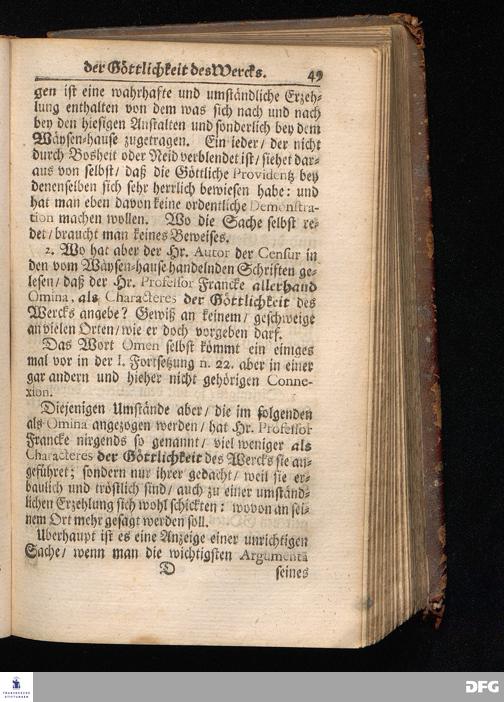 Segens=volle Fußstapfen des noch lebenden und waltenden liebreichen und getreuen GOttes / Zur Beschämung des Unglaubens und Stärckung des Glaubens entdecket durch eine wahrhafte und umständliche Nachricht von dem Wäysen=Hause und übrigen Anstalten zu Glaucha vor Halle: Welche im Jahr 1701. zum Druck befördert; ietzo aber zum dritten mal ediret / und bis auf gegenwärtiges Jahr fortgesetzet von August.Herm.Francken / S.Theol.Prof.und Past. Halle / in Verlegung des Wäysen=hauses / MDCCIX.