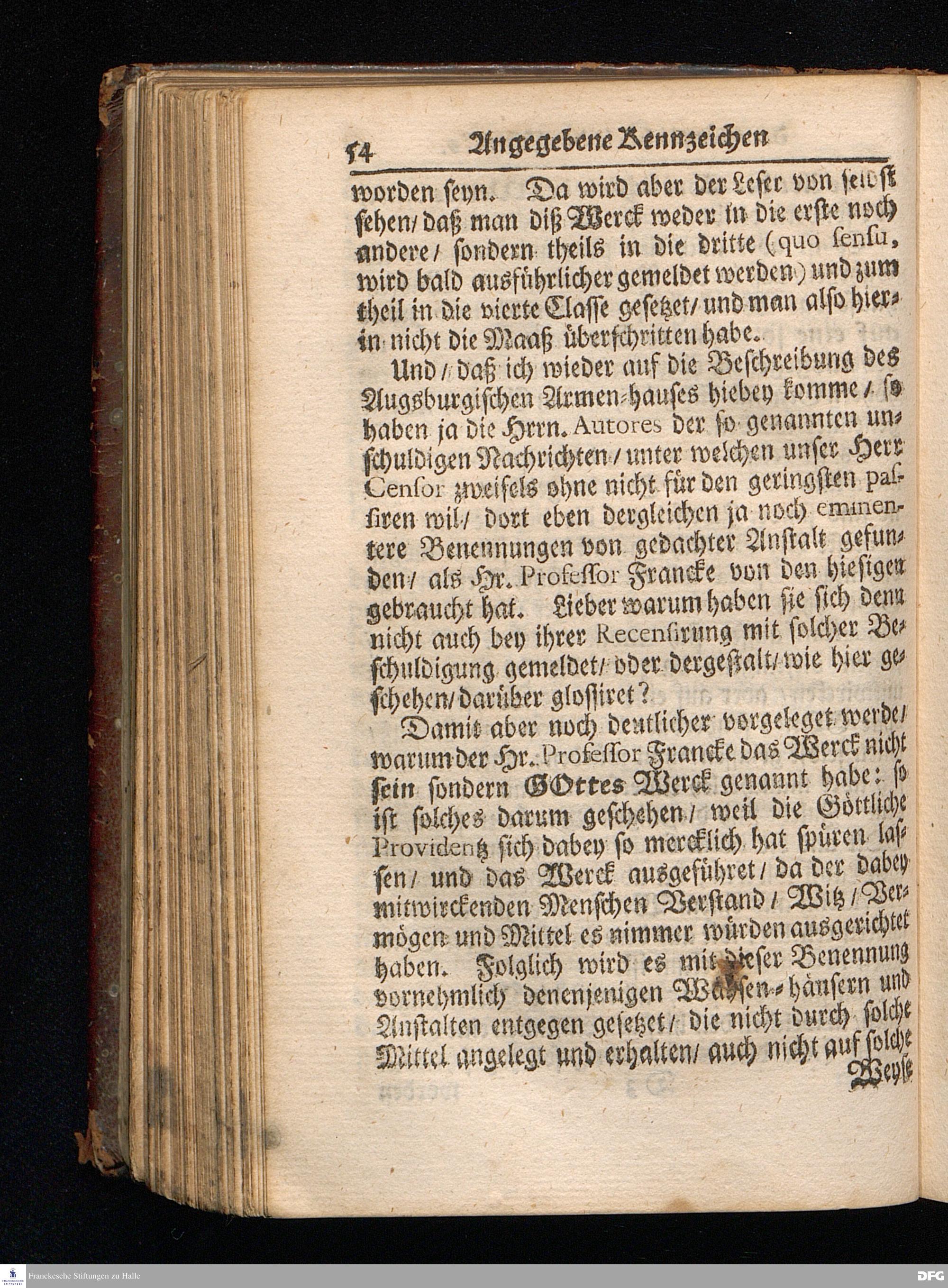 Segens=volle Fußstapfen des noch lebenden und waltenden liebreichen und getreuen GOttes / Zur Beschämung des Unglaubens und Stärckung des Glaubens entdecket durch eine wahrhafte und umständliche Nachricht von dem Wäysen=Hause und übrigen Anstalten zu Glaucha vor Halle: Welche im Jahr 1701. zum Druck befördert; ietzo aber zum dritten mal ediret / und bis auf gegenwärtiges Jahr fortgesetzet von August.Herm.Francken / S.Theol.Prof.und Past. Halle / in Verlegung des Wäysen=hauses / MDCCIX.
