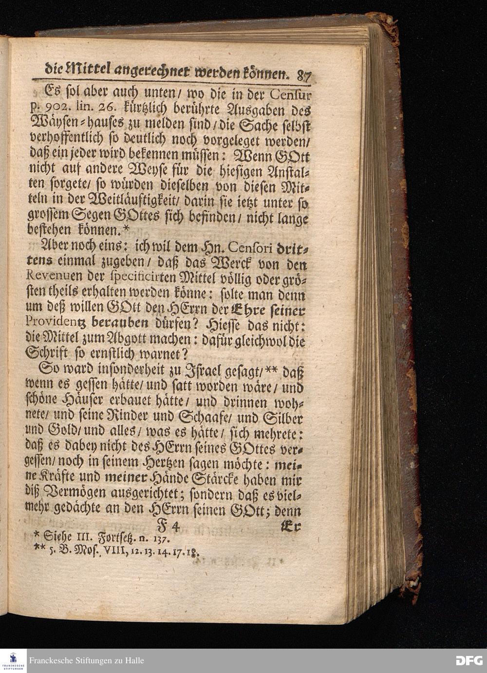 Segens=volle Fußstapfen des noch lebenden und waltenden liebreichen und getreuen GOttes / Zur Beschämung des Unglaubens und Stärckung des Glaubens entdecket durch eine wahrhafte und umständliche Nachricht von dem Wäysen=Hause und übrigen Anstalten zu Glaucha vor Halle: Welche im Jahr 1701. zum Druck befördert; ietzo aber zum dritten mal ediret / und bis auf gegenwärtiges Jahr fortgesetzet von August.Herm.Francken / S.Theol.Prof.und Past. Halle / in Verlegung des Wäysen=hauses / MDCCIX.