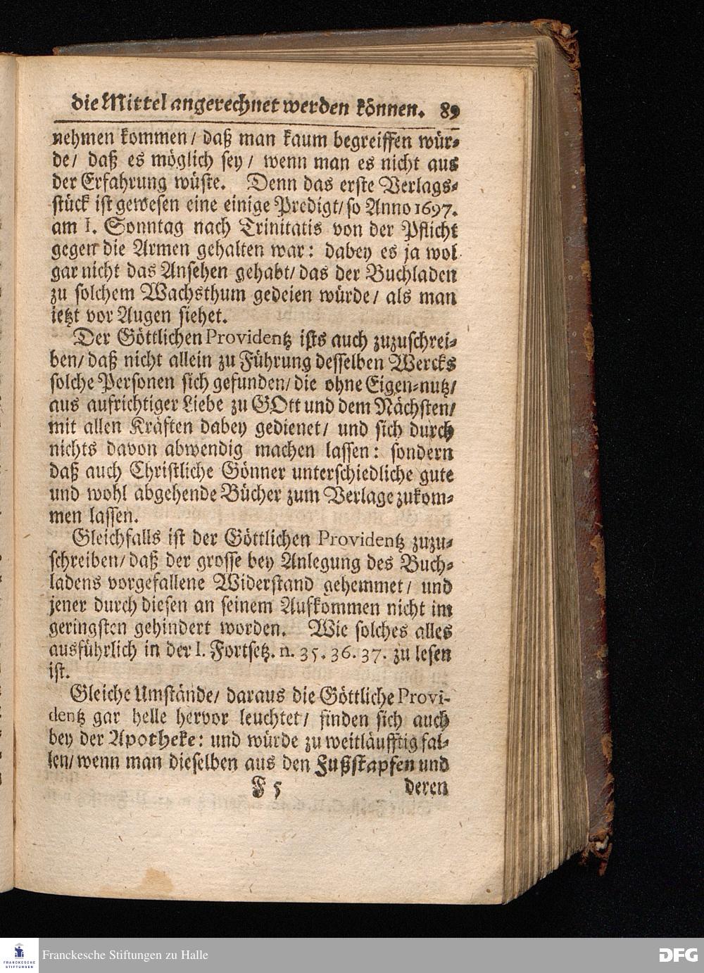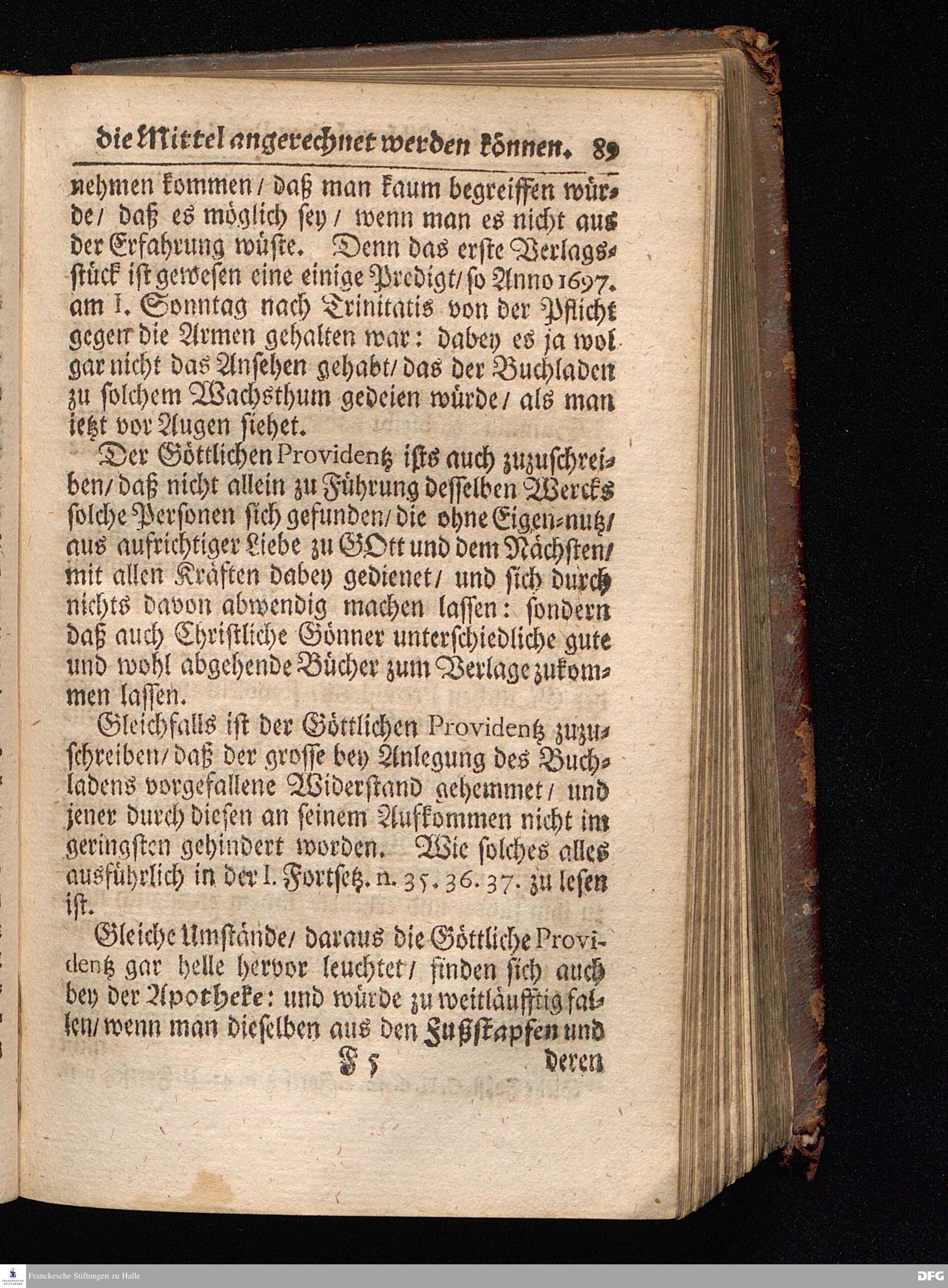 Segens=volle Fußstapfen des noch lebenden und waltenden liebreichen und getreuen GOttes / Zur Beschämung des Unglaubens und Stärckung des Glaubens entdecket durch eine wahrhafte und umständliche Nachricht von dem Wäysen=Hause und übrigen Anstalten zu Glaucha vor Halle: Welche im Jahr 1701. zum Druck befördert; ietzo aber zum dritten mal ediret / und bis auf gegenwärtiges Jahr fortgesetzet von August.Herm.Francken / S.Theol.Prof.und Past. Halle / in Verlegung des Wäysen=hauses / MDCCIX.