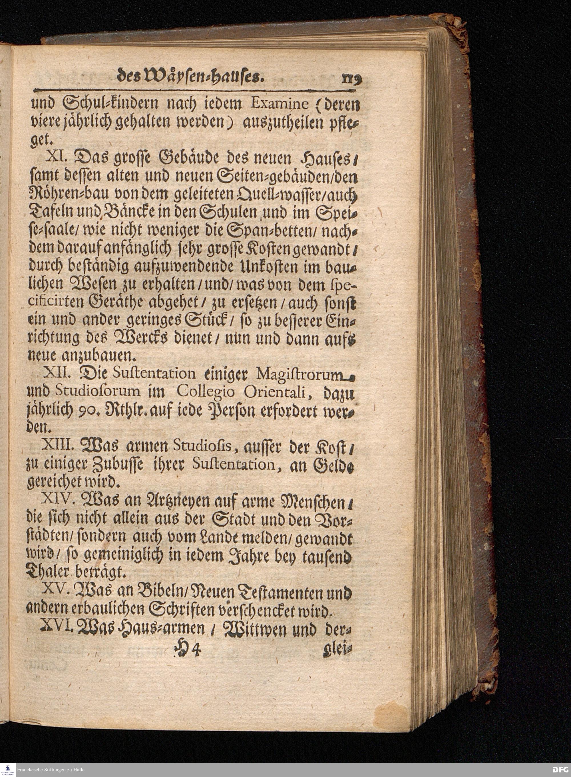 Segens=volle Fußstapfen des noch lebenden und waltenden liebreichen und getreuen GOttes / Zur Beschämung des Unglaubens und Stärckung des Glaubens entdecket durch eine wahrhafte und umständliche Nachricht von dem Wäysen=Hause und übrigen Anstalten zu Glaucha vor Halle: Welche im Jahr 1701. zum Druck befördert; ietzo aber zum dritten mal ediret / und bis auf gegenwärtiges Jahr fortgesetzet von August.Herm.Francken / S.Theol.Prof.und Past. Halle / in Verlegung des Wäysen=hauses / MDCCIX.