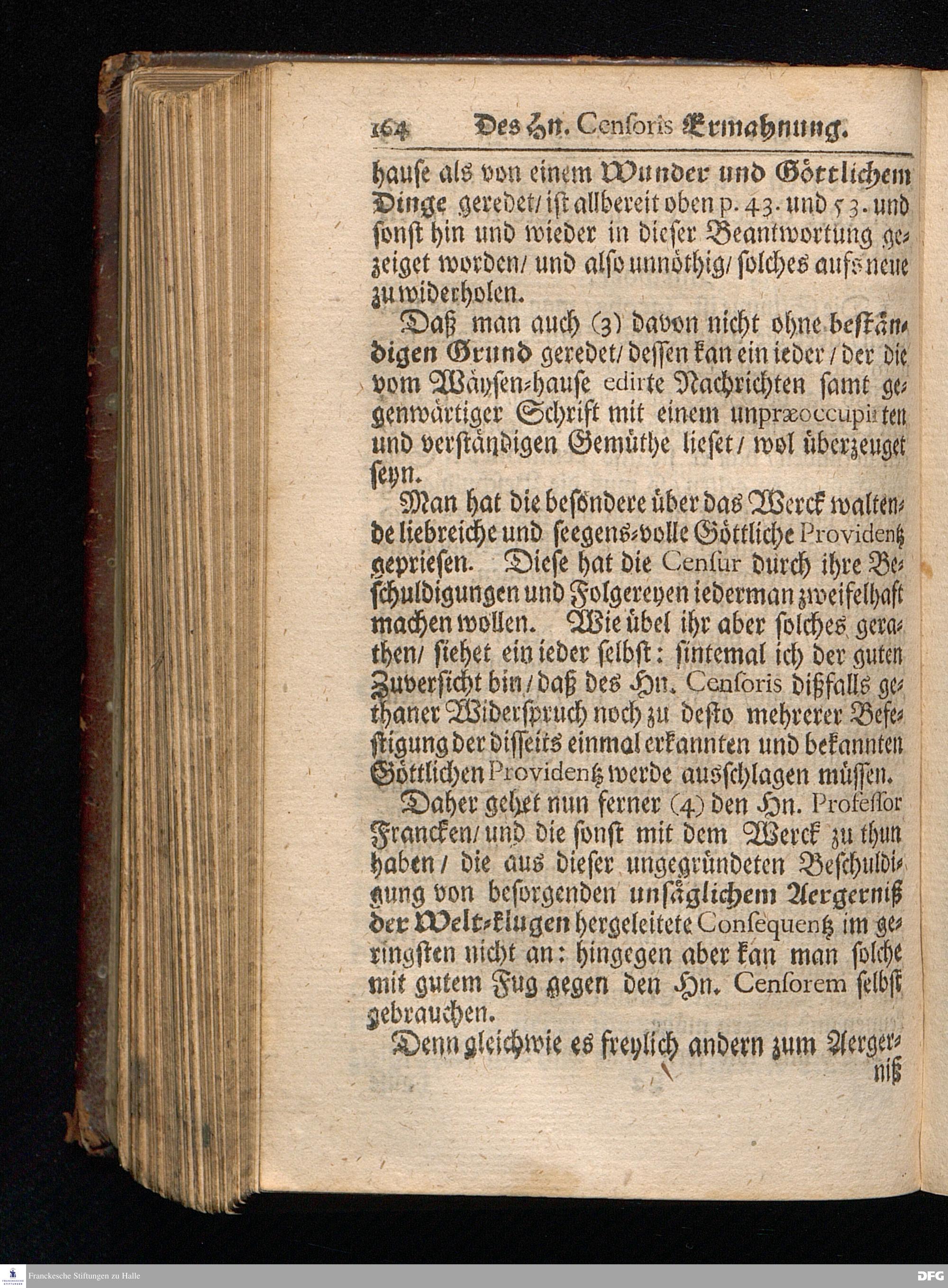 Segens=volle Fußstapfen des noch lebenden und waltenden liebreichen und getreuen GOttes / Zur Beschämung des Unglaubens und Stärckung des Glaubens entdecket durch eine wahrhafte und umständliche Nachricht von dem Wäysen=Hause und übrigen Anstalten zu Glaucha vor Halle: Welche im Jahr 1701. zum Druck befördert; ietzo aber zum dritten mal ediret / und bis auf gegenwärtiges Jahr fortgesetzet von August.Herm.Francken / S.Theol.Prof.und Past. Halle / in Verlegung des Wäysen=hauses / MDCCIX.