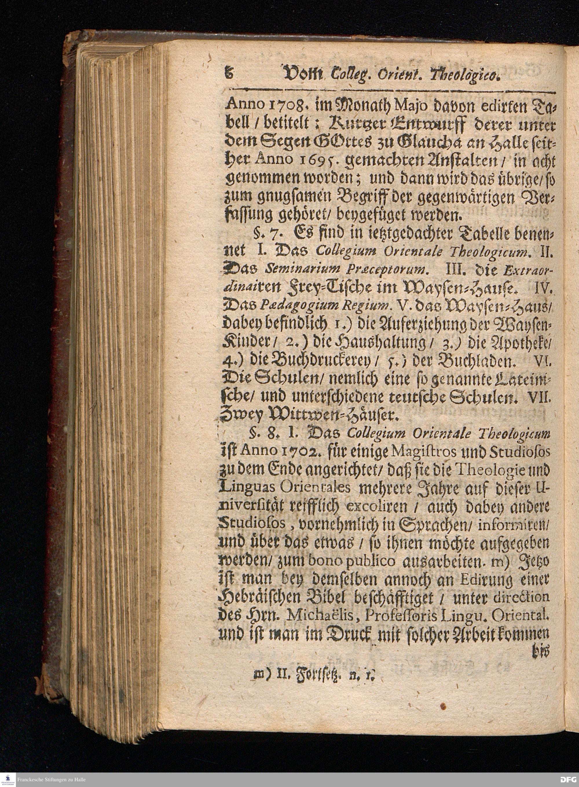 Segens=volle Fußstapfen des noch lebenden und waltenden liebreichen und getreuen GOttes / Zur Beschämung des Unglaubens und Stärckung des Glaubens entdecket durch eine wahrhafte und umständliche Nachricht von dem Wäysen=Hause und übrigen Anstalten zu Glaucha vor Halle: Welche im Jahr 1701. zum Druck befördert; ietzo aber zum dritten mal ediret / und bis auf gegenwärtiges Jahr fortgesetzet von August.Herm.Francken / S.Theol.Prof.und Past. Halle / in Verlegung des Wäysen=hauses / MDCCIX.