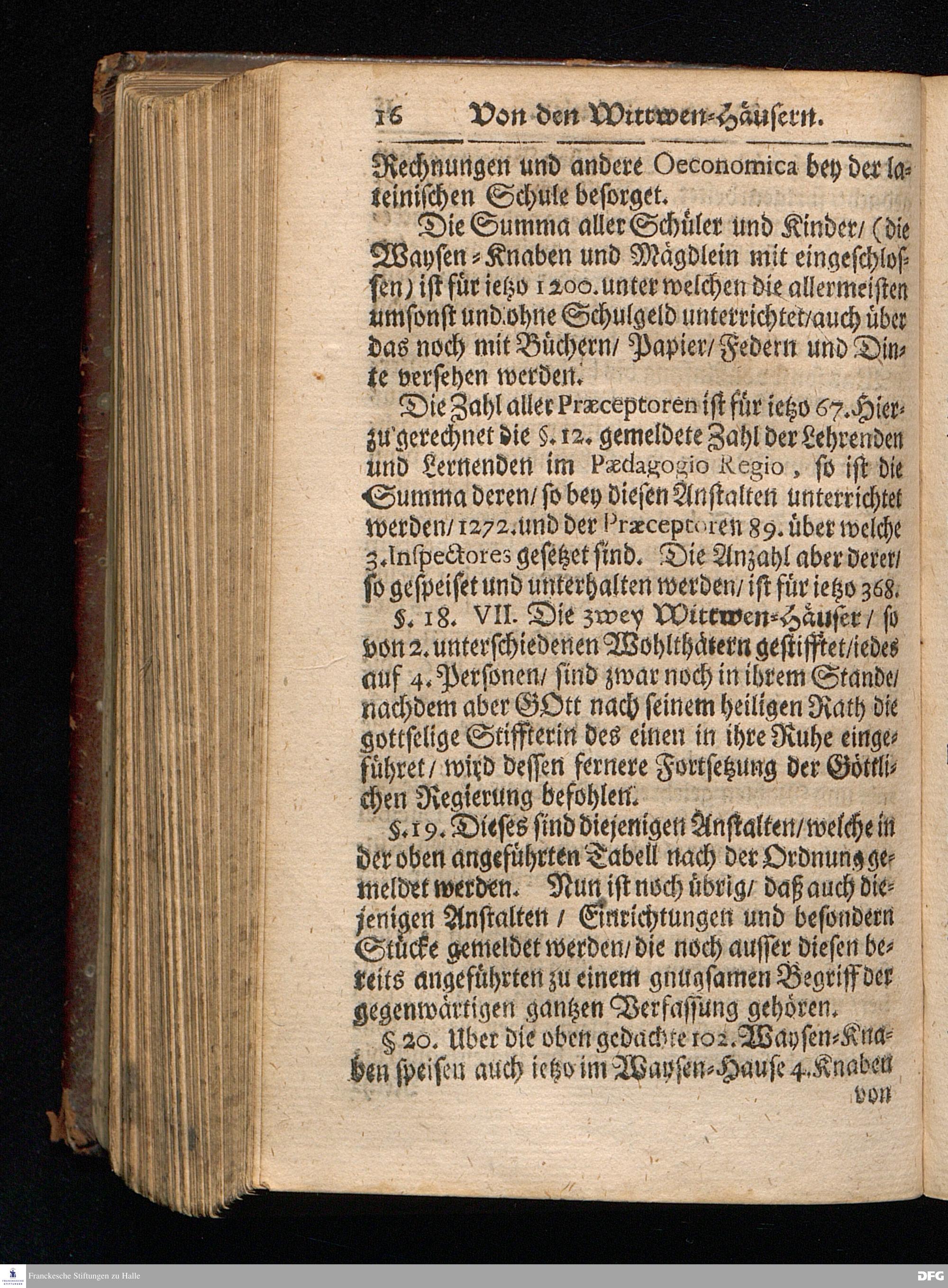 Segens=volle Fußstapfen des noch lebenden und waltenden liebreichen und getreuen GOttes / Zur Beschämung des Unglaubens und Stärckung des Glaubens entdecket durch eine wahrhafte und umständliche Nachricht von dem Wäysen=Hause und übrigen Anstalten zu Glaucha vor Halle: Welche im Jahr 1701. zum Druck befördert; ietzo aber zum dritten mal ediret / und bis auf gegenwärtiges Jahr fortgesetzet von August.Herm.Francken / S.Theol.Prof.und Past. Halle / in Verlegung des Wäysen=hauses / MDCCIX.