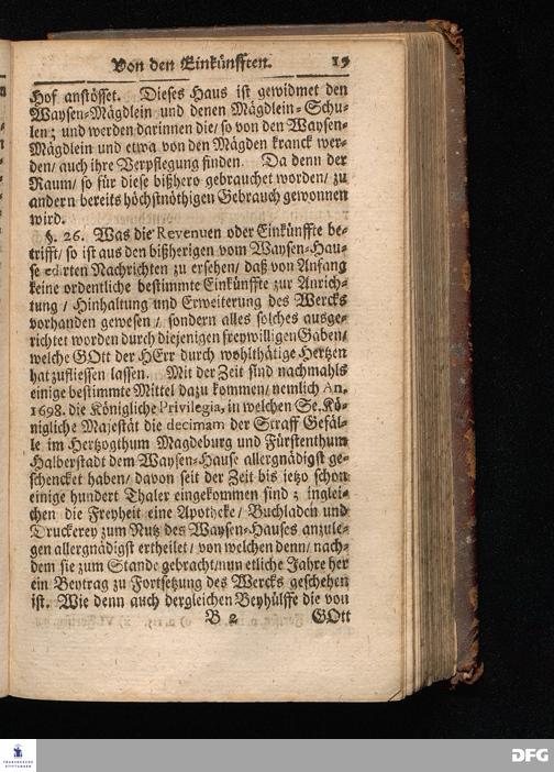 Segens=volle Fußstapfen des noch lebenden und waltenden liebreichen und getreuen GOttes / Zur Beschämung des Unglaubens und Stärckung des Glaubens entdecket durch eine wahrhafte und umständliche Nachricht von dem Wäysen=Hause und übrigen Anstalten zu Glaucha vor Halle: Welche im Jahr 1701. zum Druck befördert; ietzo aber zum dritten mal ediret / und bis auf gegenwärtiges Jahr fortgesetzet von August.Herm.Francken / S.Theol.Prof.und Past. Halle / in Verlegung des Wäysen=hauses / MDCCIX.