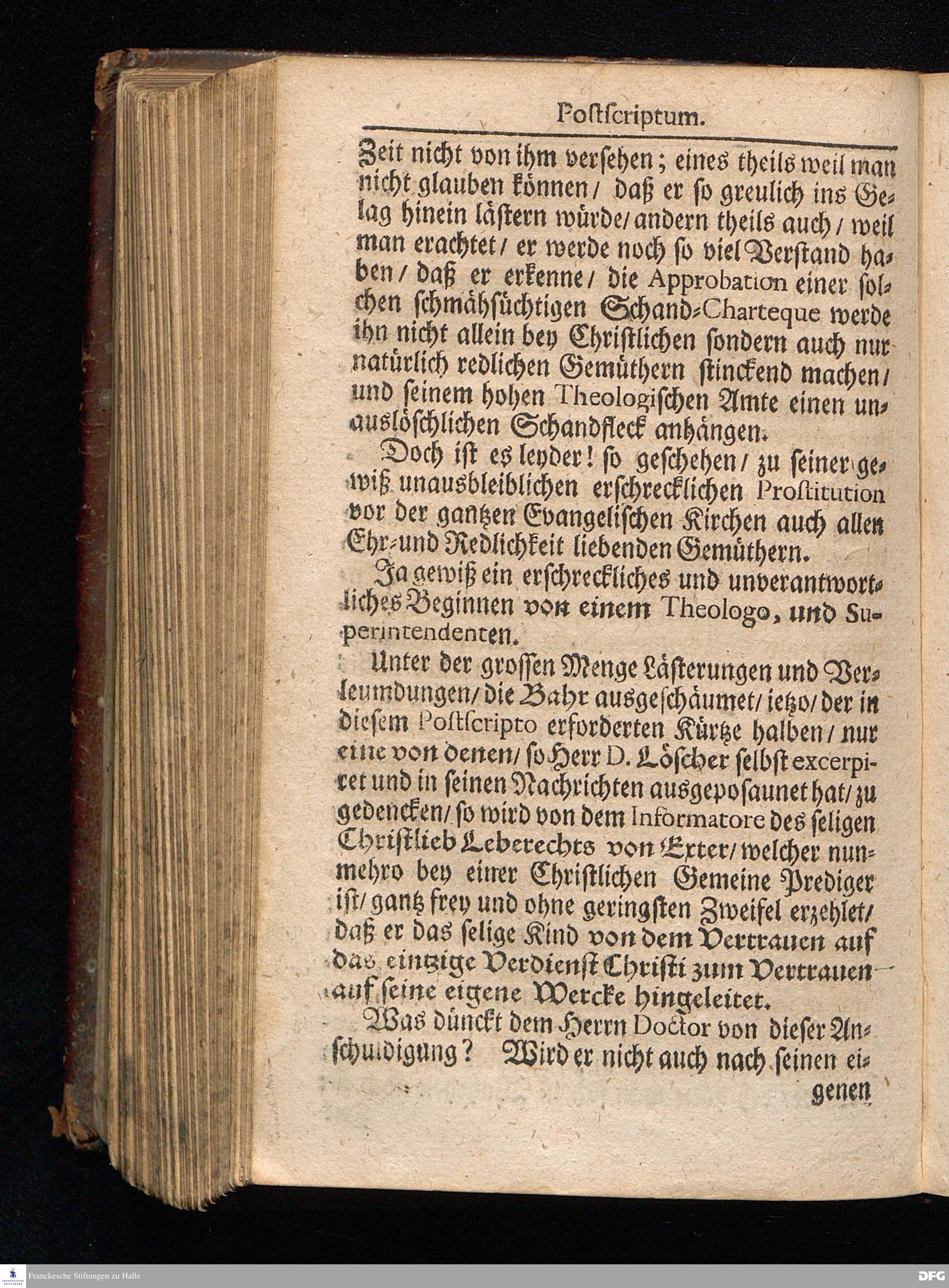 Segens=volle Fußstapfen des noch lebenden und waltenden liebreichen und getreuen GOttes / Zur Beschämung des Unglaubens und Stärckung des Glaubens entdecket durch eine wahrhafte und umständliche Nachricht von dem Wäysen=Hause und übrigen Anstalten zu Glaucha vor Halle: Welche im Jahr 1701. zum Druck befördert; ietzo aber zum dritten mal ediret / und bis auf gegenwärtiges Jahr fortgesetzet von August.Herm.Francken / S.Theol.Prof.und Past. Halle / in Verlegung des Wäysen=hauses / MDCCIX.