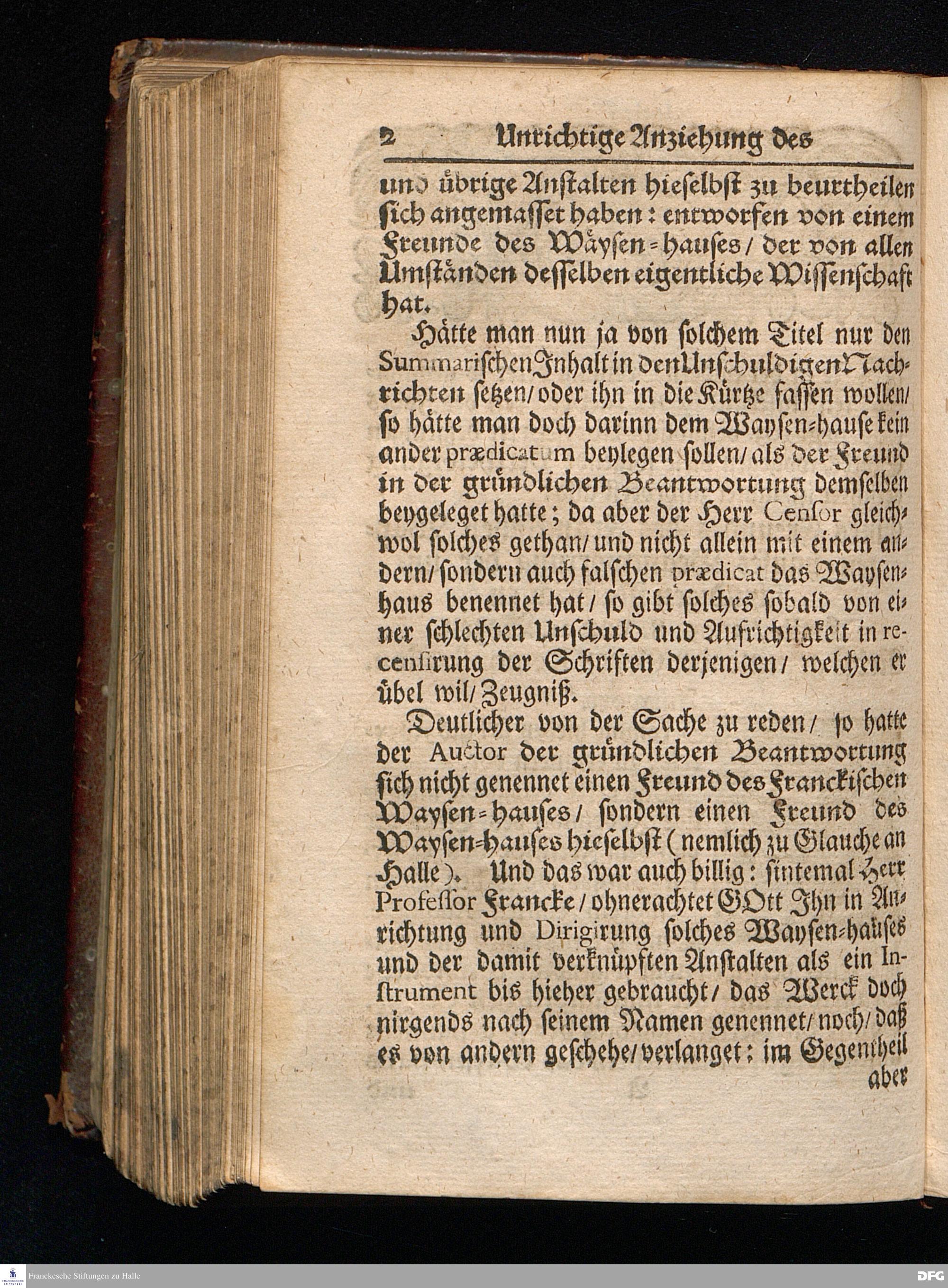 Segens=volle Fußstapfen des noch lebenden und waltenden liebreichen und getreuen GOttes / Zur Beschämung des Unglaubens und Stärckung des Glaubens entdecket durch eine wahrhafte und umständliche Nachricht von dem Wäysen=Hause und übrigen Anstalten zu Glaucha vor Halle: Welche im Jahr 1701. zum Druck befördert; ietzo aber zum dritten mal ediret / und bis auf gegenwärtiges Jahr fortgesetzet von August.Herm.Francken / S.Theol.Prof.und Past. Halle / in Verlegung des Wäysen=hauses / MDCCIX.