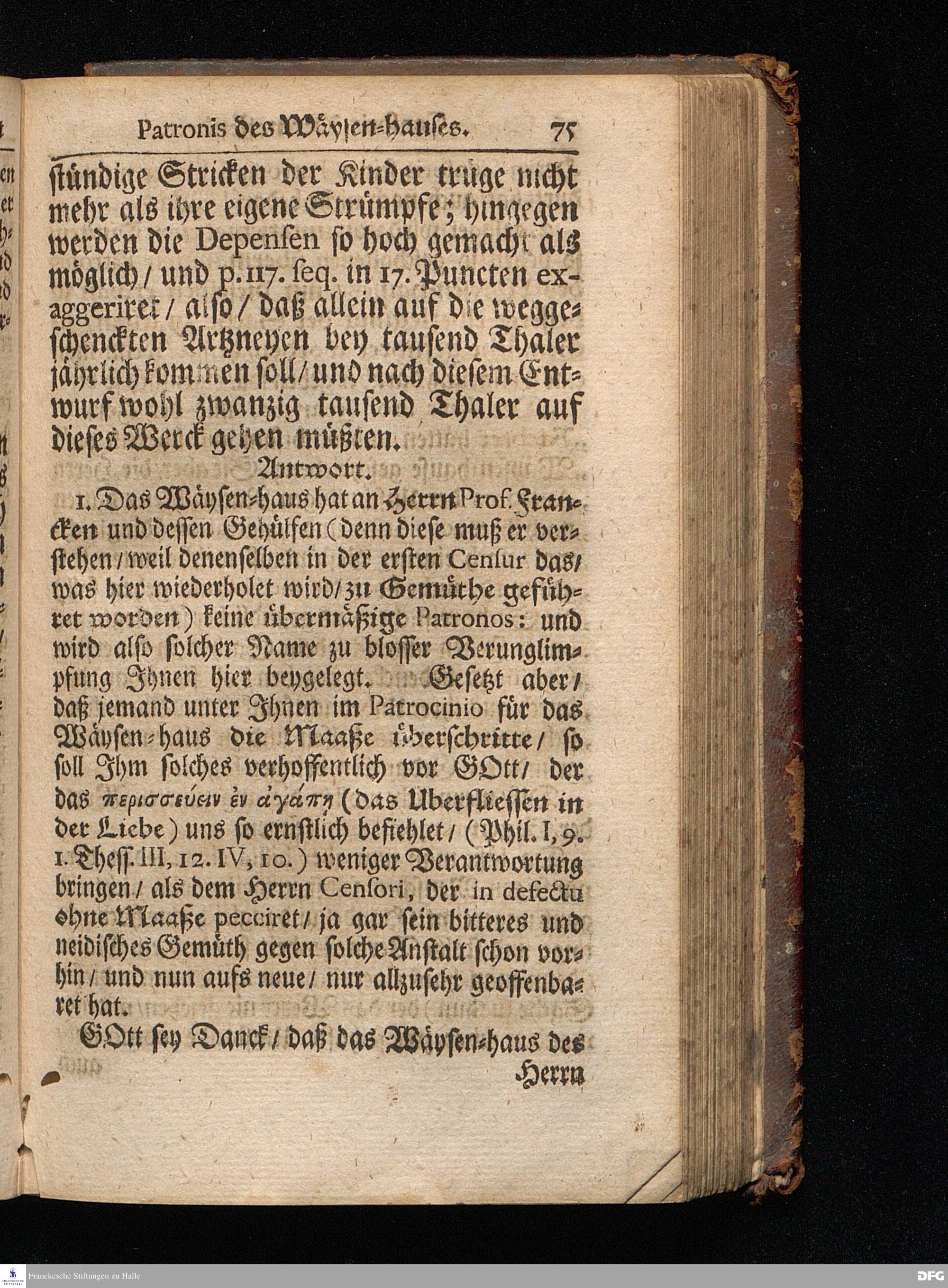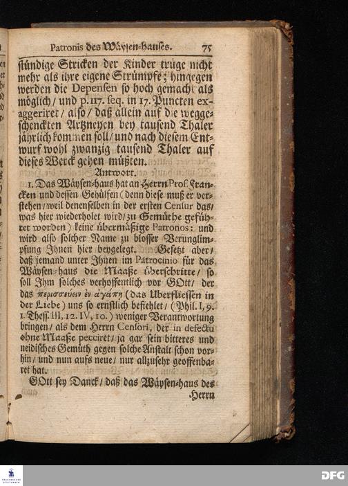 Segens=volle Fußstapfen des noch lebenden und waltenden liebreichen und getreuen GOttes / Zur Beschämung des Unglaubens und Stärckung des Glaubens entdecket durch eine wahrhafte und umständliche Nachricht von dem Wäysen=Hause und übrigen Anstalten zu Glaucha vor Halle: Welche im Jahr 1701. zum Druck befördert; ietzo aber zum dritten mal ediret / und bis auf gegenwärtiges Jahr fortgesetzet von August.Herm.Francken / S.Theol.Prof.und Past. Halle / in Verlegung des Wäysen=hauses / MDCCIX.