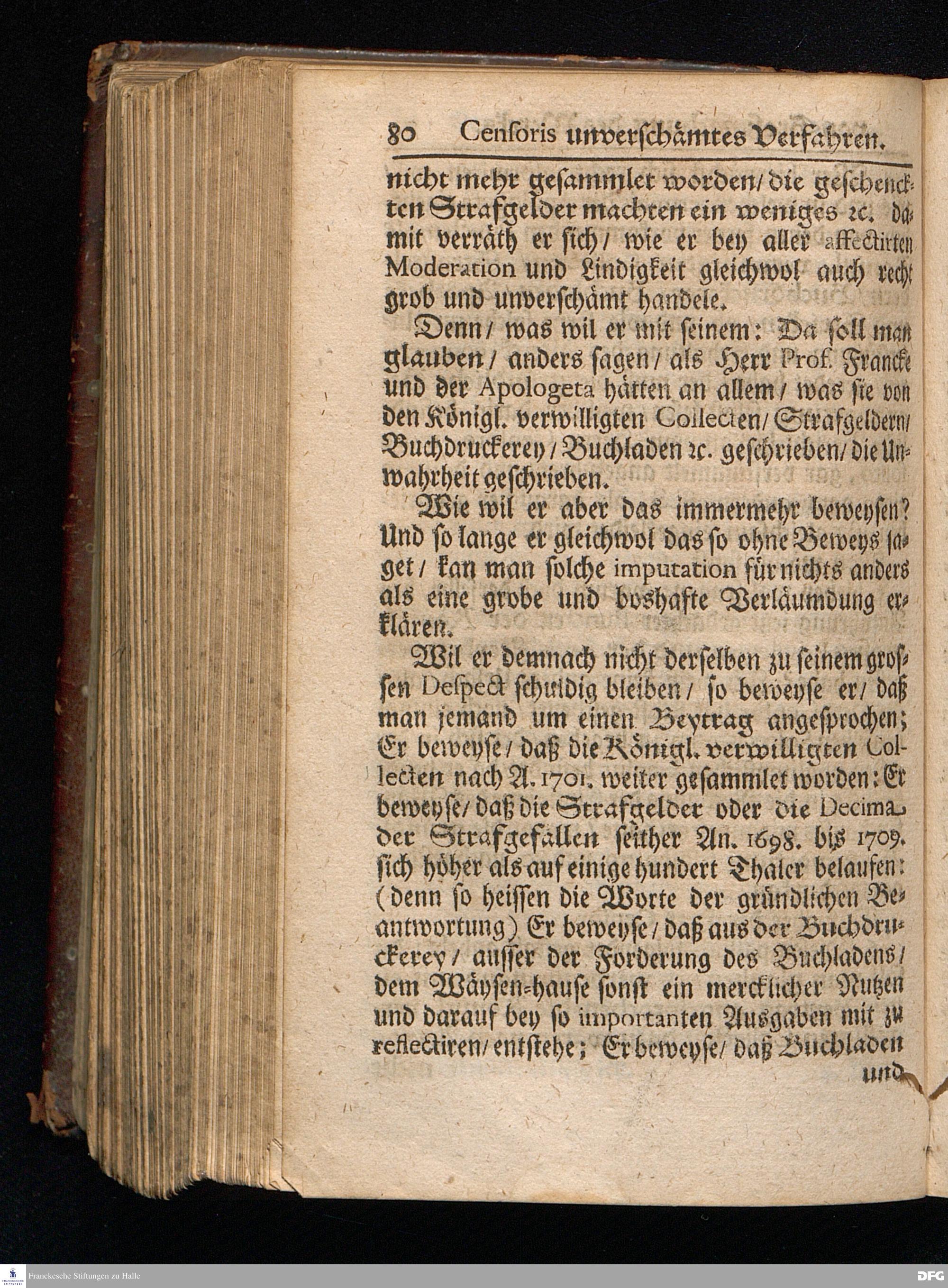 Segens=volle Fußstapfen des noch lebenden und waltenden liebreichen und getreuen GOttes / Zur Beschämung des Unglaubens und Stärckung des Glaubens entdecket durch eine wahrhafte und umständliche Nachricht von dem Wäysen=Hause und übrigen Anstalten zu Glaucha vor Halle: Welche im Jahr 1701. zum Druck befördert; ietzo aber zum dritten mal ediret / und bis auf gegenwärtiges Jahr fortgesetzet von August.Herm.Francken / S.Theol.Prof.und Past. Halle / in Verlegung des Wäysen=hauses / MDCCIX.