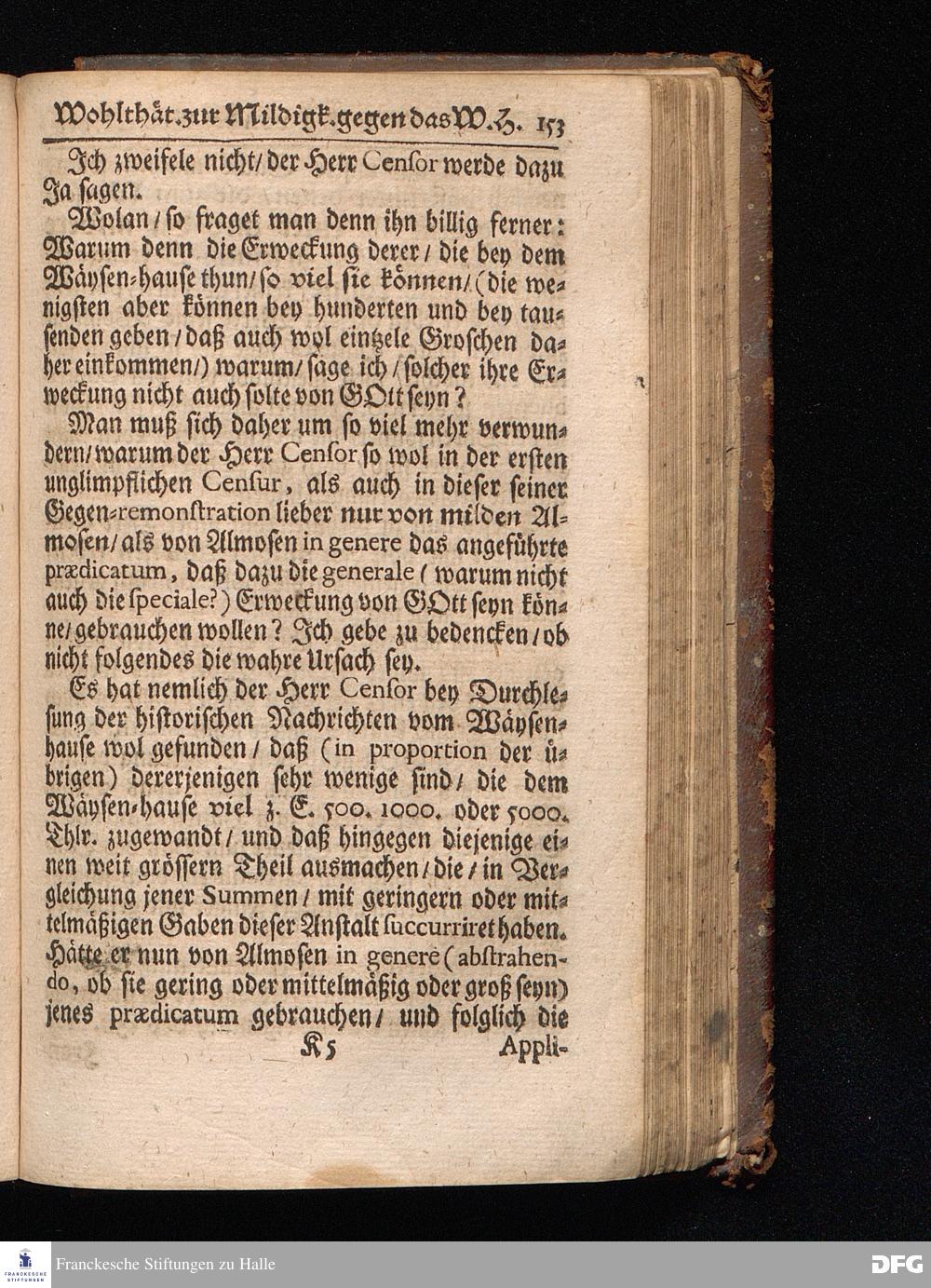Segens=volle Fußstapfen des noch lebenden und waltenden liebreichen und getreuen GOttes / Zur Beschämung des Unglaubens und Stärckung des Glaubens entdecket durch eine wahrhafte und umständliche Nachricht von dem Wäysen=Hause und übrigen Anstalten zu Glaucha vor Halle: Welche im Jahr 1701. zum Druck befördert; ietzo aber zum dritten mal ediret / und bis auf gegenwärtiges Jahr fortgesetzet von August.Herm.Francken / S.Theol.Prof.und Past. Halle / in Verlegung des Wäysen=hauses / MDCCIX.