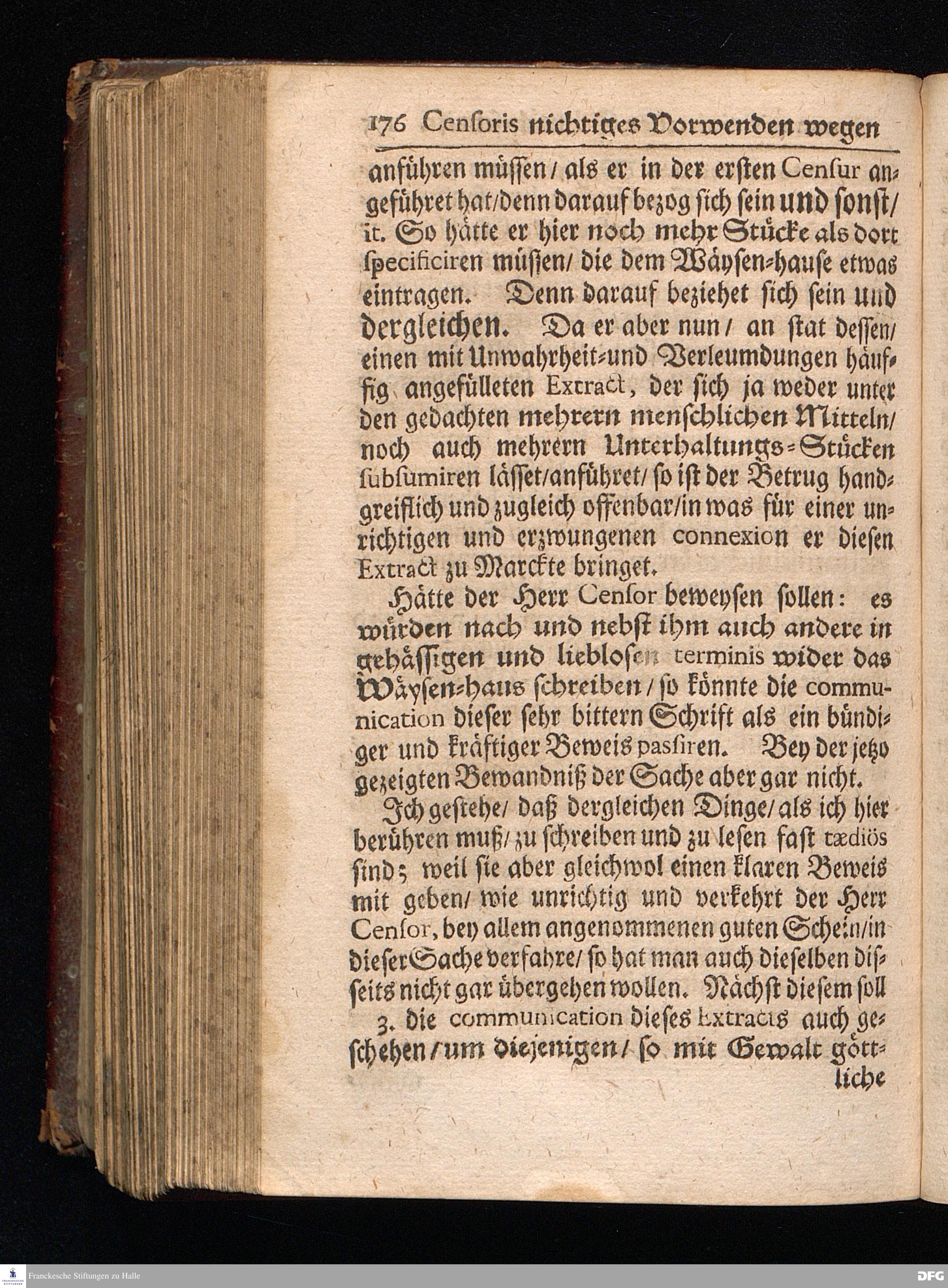 Segens=volle Fußstapfen des noch lebenden und waltenden liebreichen und getreuen GOttes / Zur Beschämung des Unglaubens und Stärckung des Glaubens entdecket durch eine wahrhafte und umständliche Nachricht von dem Wäysen=Hause und übrigen Anstalten zu Glaucha vor Halle: Welche im Jahr 1701. zum Druck befördert; ietzo aber zum dritten mal ediret / und bis auf gegenwärtiges Jahr fortgesetzet von August.Herm.Francken / S.Theol.Prof.und Past. Halle / in Verlegung des Wäysen=hauses / MDCCIX.