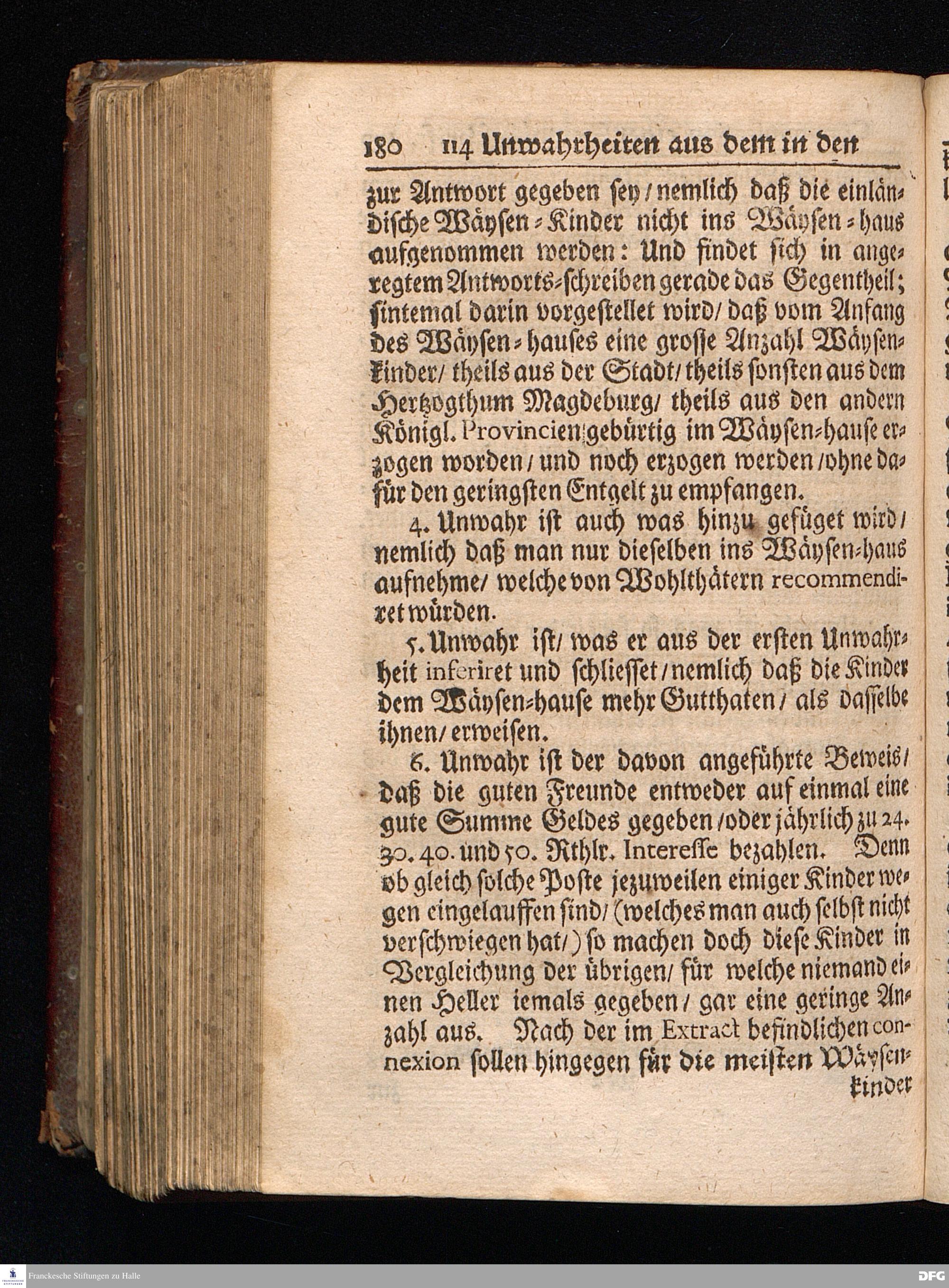 Segens=volle Fußstapfen des noch lebenden und waltenden liebreichen und getreuen GOttes / Zur Beschämung des Unglaubens und Stärckung des Glaubens entdecket durch eine wahrhafte und umständliche Nachricht von dem Wäysen=Hause und übrigen Anstalten zu Glaucha vor Halle: Welche im Jahr 1701. zum Druck befördert; ietzo aber zum dritten mal ediret / und bis auf gegenwärtiges Jahr fortgesetzet von August.Herm.Francken / S.Theol.Prof.und Past. Halle / in Verlegung des Wäysen=hauses / MDCCIX.