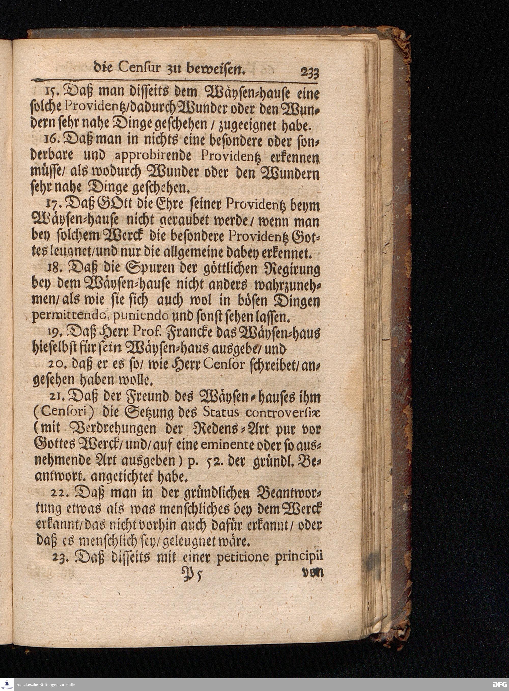 Segens=volle Fußstapfen des noch lebenden und waltenden liebreichen und getreuen GOttes / Zur Beschämung des Unglaubens und Stärckung des Glaubens entdecket durch eine wahrhafte und umständliche Nachricht von dem Wäysen=Hause und übrigen Anstalten zu Glaucha vor Halle: Welche im Jahr 1701. zum Druck befördert; ietzo aber zum dritten mal ediret / und bis auf gegenwärtiges Jahr fortgesetzet von August.Herm.Francken / S.Theol.Prof.und Past. Halle / in Verlegung des Wäysen=hauses / MDCCIX.