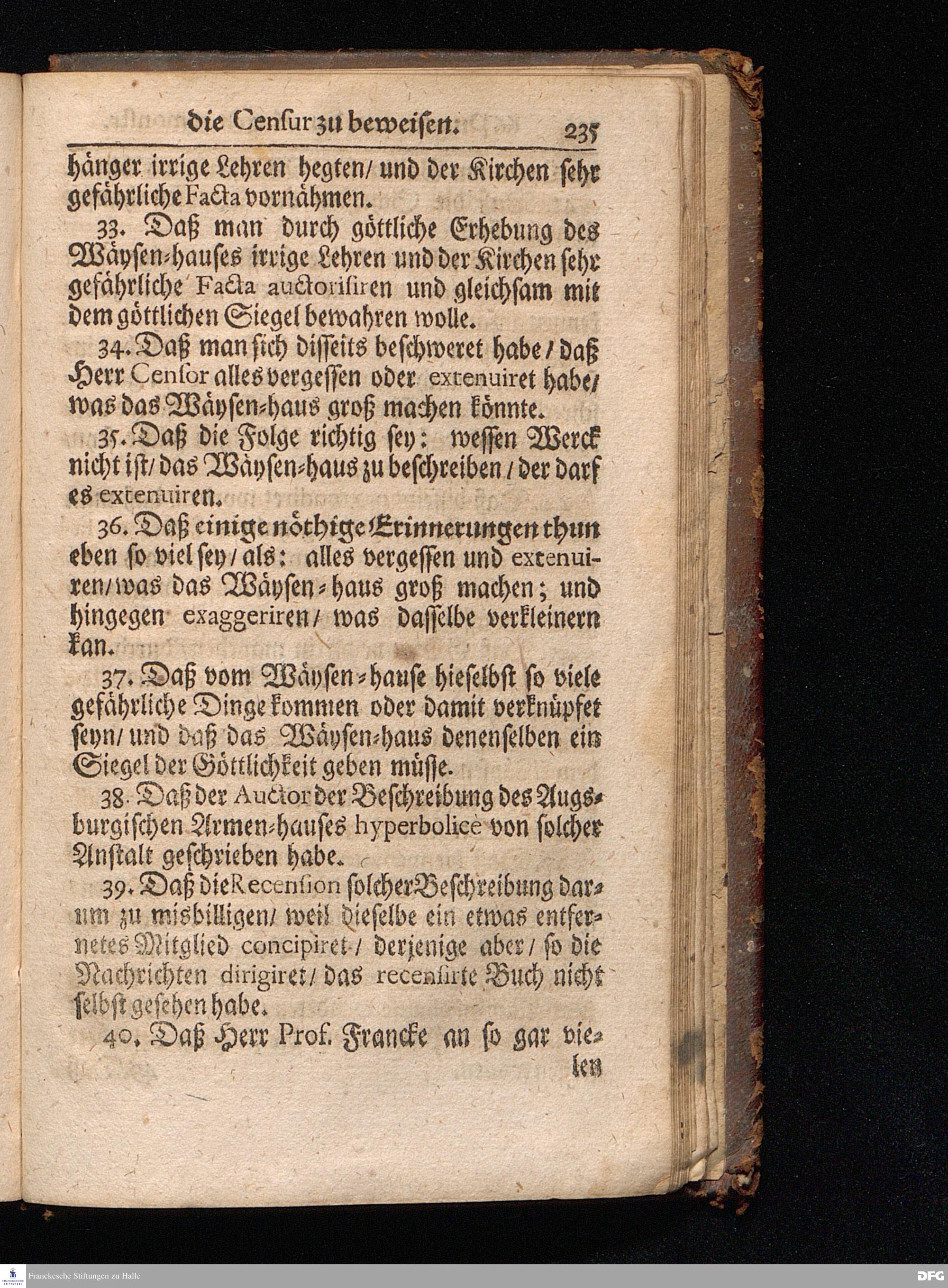 Segens=volle Fußstapfen des noch lebenden und waltenden liebreichen und getreuen GOttes / Zur Beschämung des Unglaubens und Stärckung des Glaubens entdecket durch eine wahrhafte und umständliche Nachricht von dem Wäysen=Hause und übrigen Anstalten zu Glaucha vor Halle: Welche im Jahr 1701. zum Druck befördert; ietzo aber zum dritten mal ediret / und bis auf gegenwärtiges Jahr fortgesetzet von August.Herm.Francken / S.Theol.Prof.und Past. Halle / in Verlegung des Wäysen=hauses / MDCCIX.