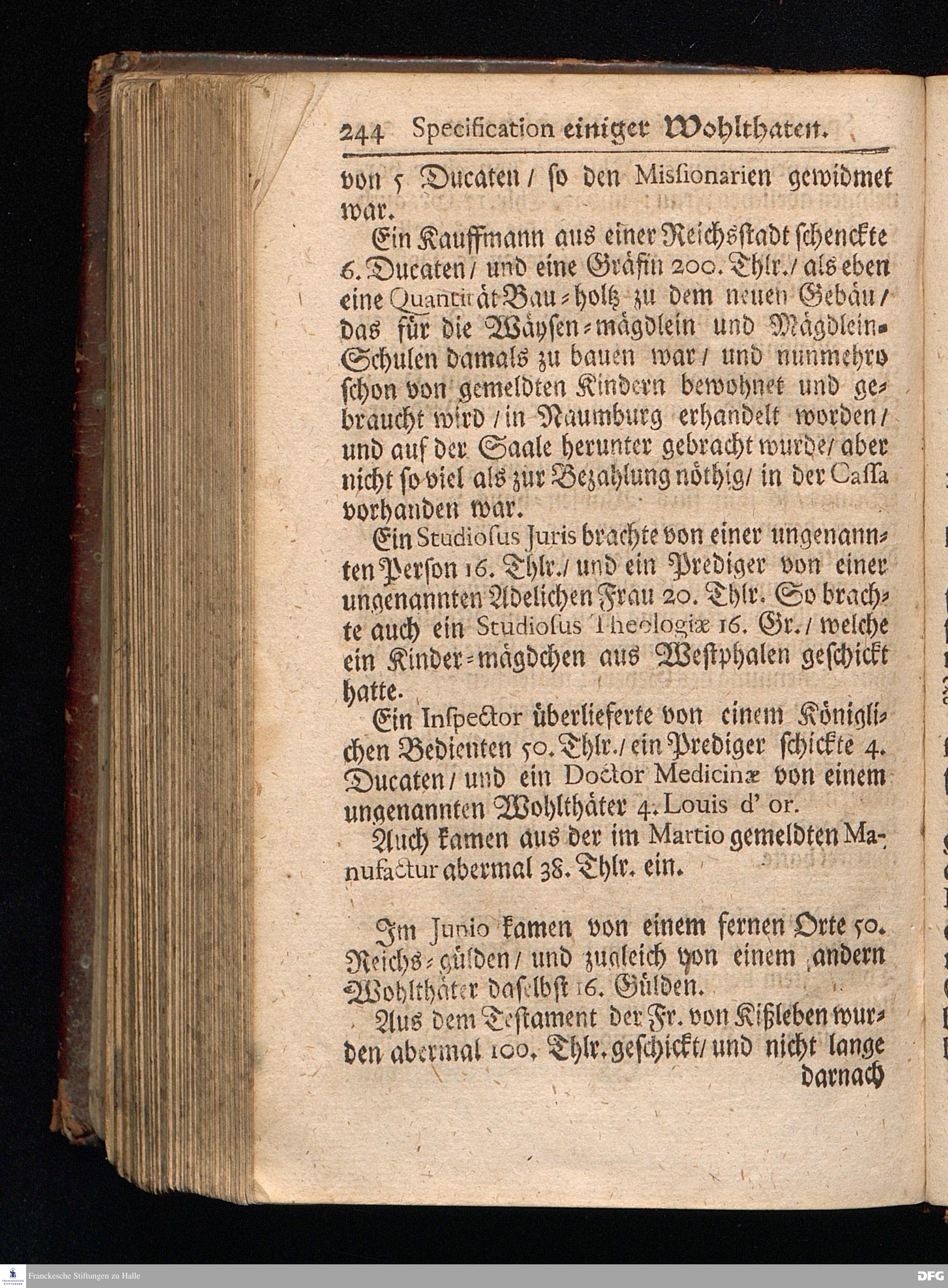 Segens=volle Fußstapfen des noch lebenden und waltenden liebreichen und getreuen GOttes / Zur Beschämung des Unglaubens und Stärckung des Glaubens entdecket durch eine wahrhafte und umständliche Nachricht von dem Wäysen=Hause und übrigen Anstalten zu Glaucha vor Halle: Welche im Jahr 1701. zum Druck befördert; ietzo aber zum dritten mal ediret / und bis auf gegenwärtiges Jahr fortgesetzet von August.Herm.Francken / S.Theol.Prof.und Past. Halle / in Verlegung des Wäysen=hauses / MDCCIX.