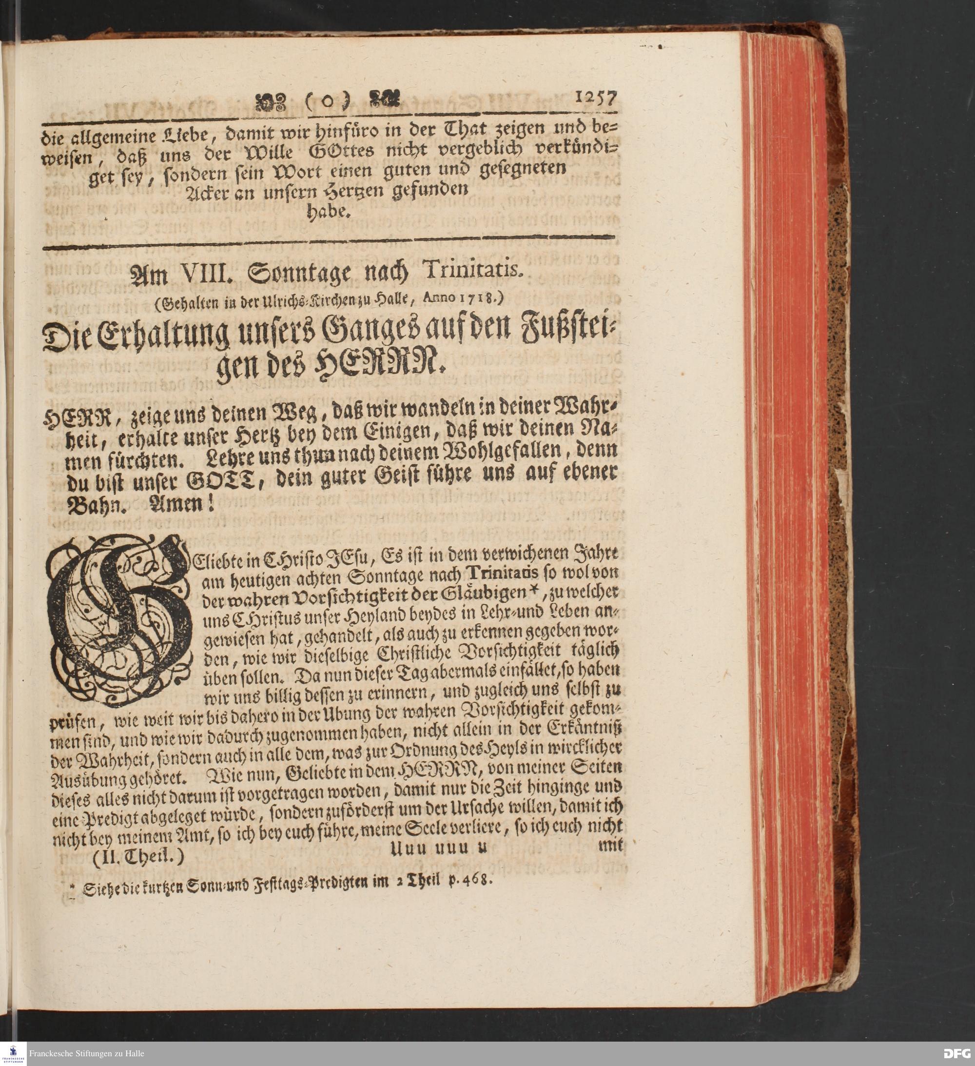 August Hermann Franckens, S.Theol.Prof.und Past. Sonn= und Fest=Tags=Predigten / Welche Theils in Halle, theils an verschiedenen auswärtigen Oertern, von wichtigen und auserlesenen Materien gehalten worden, Nebst Vorbereitung auf die hohen Feste und nützlichen Registern. Dritte Auflage. HALLE, gedruckt und verlegt im Wäysen=Hause MDCCXL. Mit Königl.Preuß.und Churfl.Brandenb.Privileg.