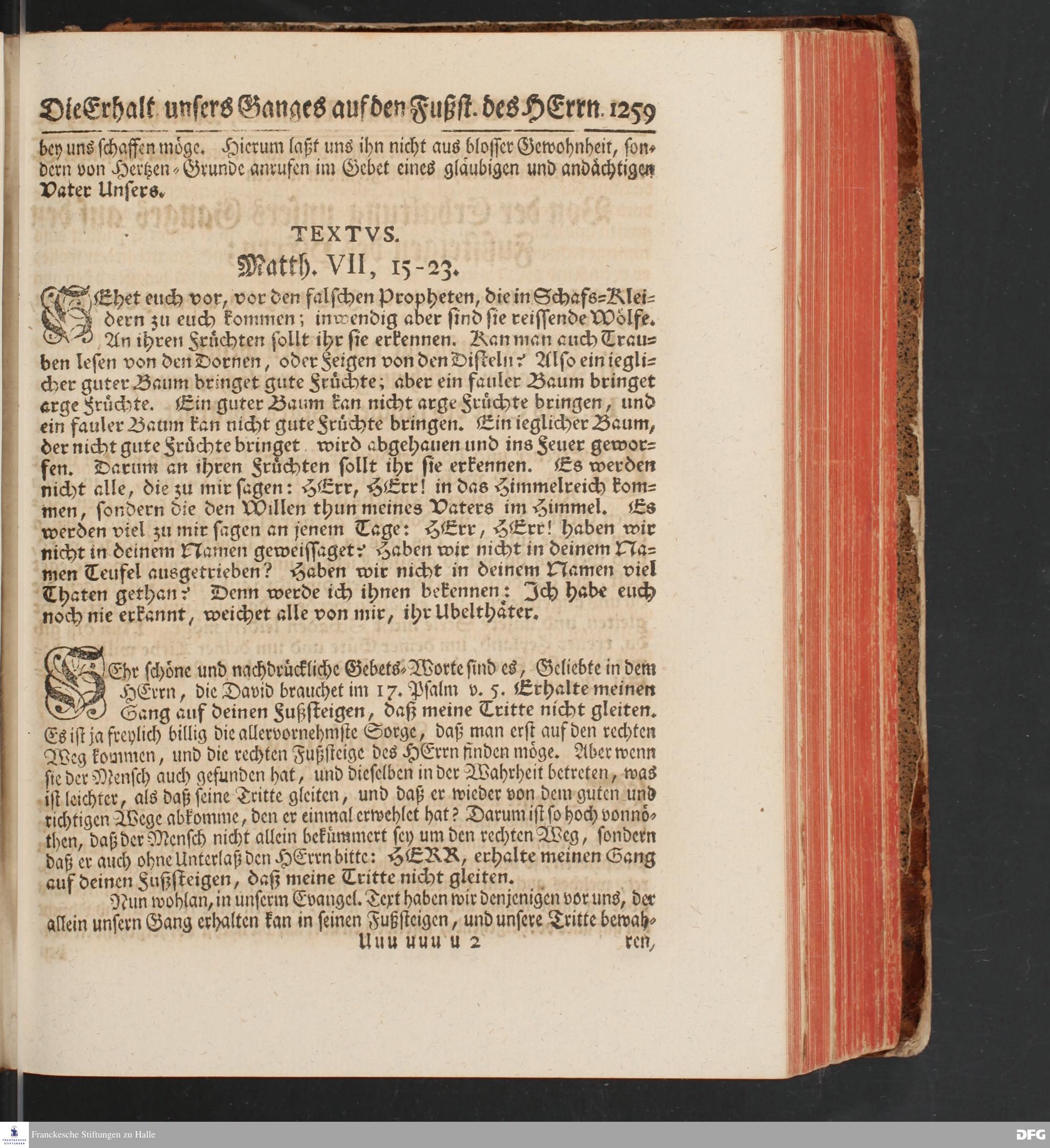 August Hermann Franckens, S.Theol.Prof.und Past. Sonn= und Fest=Tags=Predigten / Welche Theils in Halle, theils an verschiedenen auswärtigen Oertern, von wichtigen und auserlesenen Materien gehalten worden, Nebst Vorbereitung auf die hohen Feste und nützlichen Registern. Dritte Auflage. HALLE, gedruckt und verlegt im Wäysen=Hause MDCCXL. Mit Königl.Preuß.und Churfl.Brandenb.Privileg.