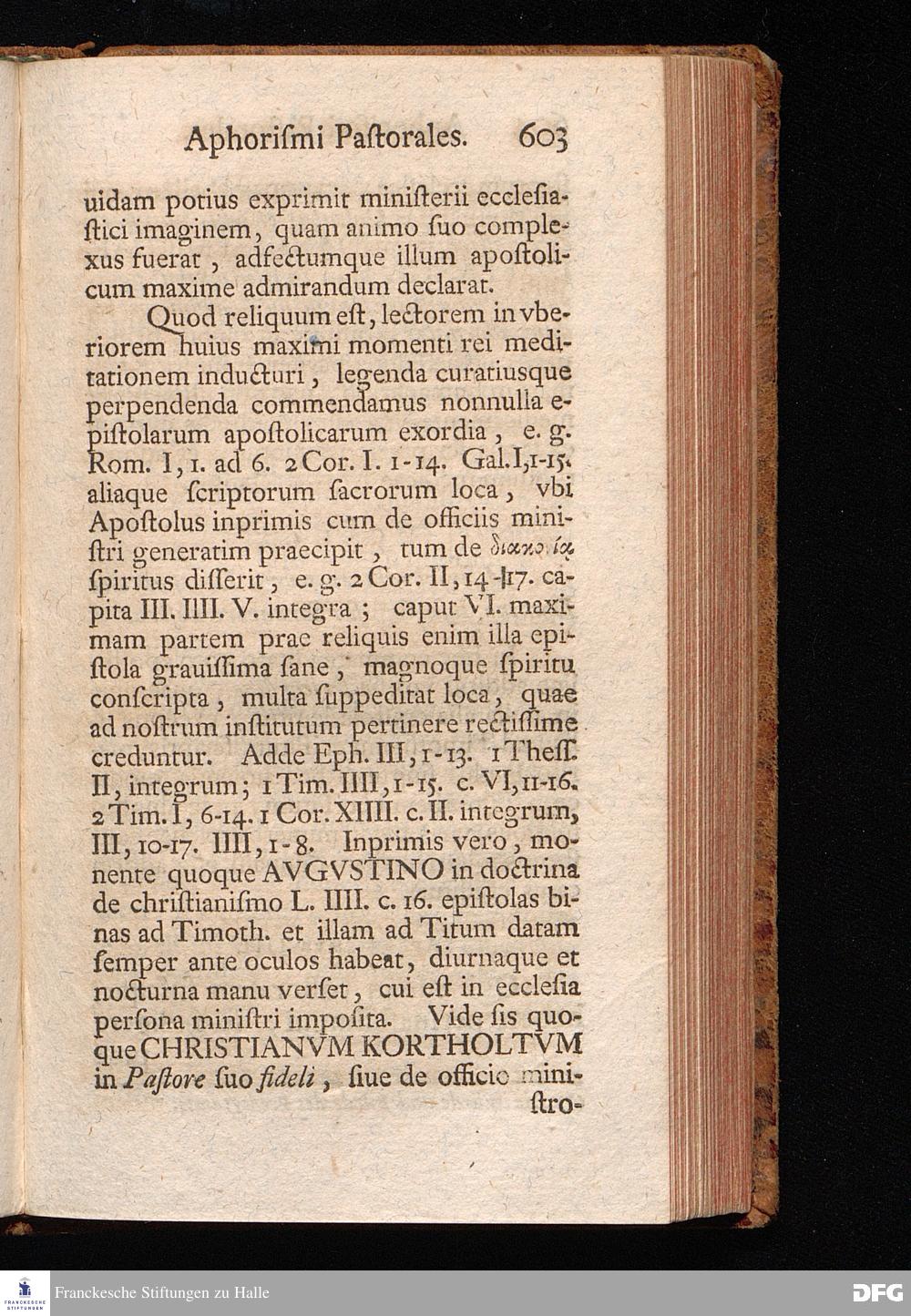 August Herr[!]mann Franckens, Weyl.S.Theol.Prof.Past.Vlric.et Schol. COLLEGIVM PASTORALE über D. IO. LVDOV. HARTMANNI PASTORALE EVANGELICVM. Anderer Theil; Nebst desselben Aus der Epistel an den Titum gezogenen und mit mehrerm erläuterten APHORISMIS PASTORALIBVS: herausgegeben von Gotthilf August Francken S.Theol.Doct.und Prof.Publ.Ord.der ersten Dioeces des Saal-Creyses Insp.und Pr.zur L.Fr. HALLE, In Verlegung des Wäysenhauses, 1743.