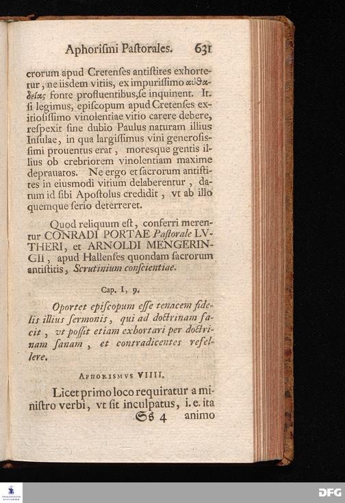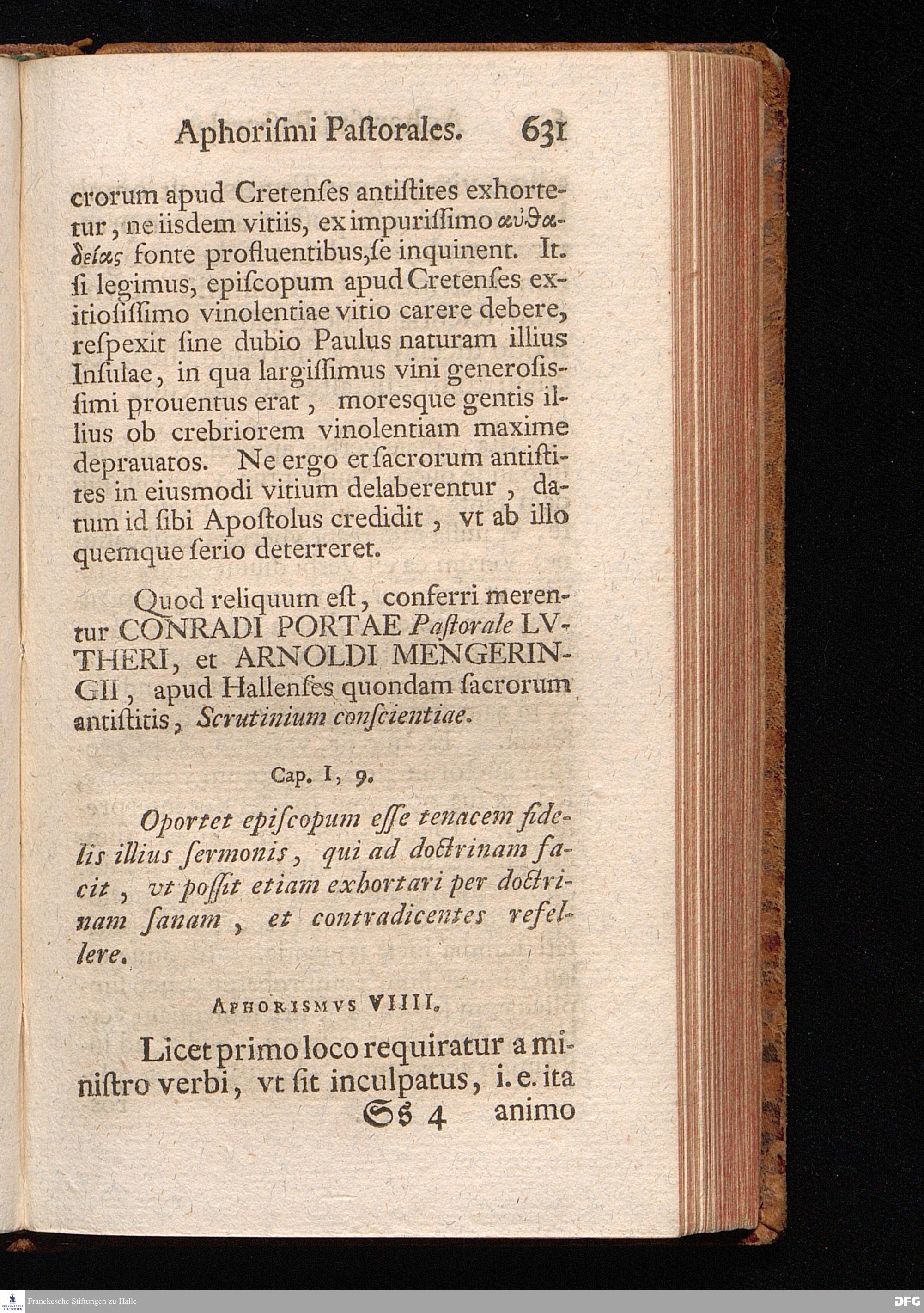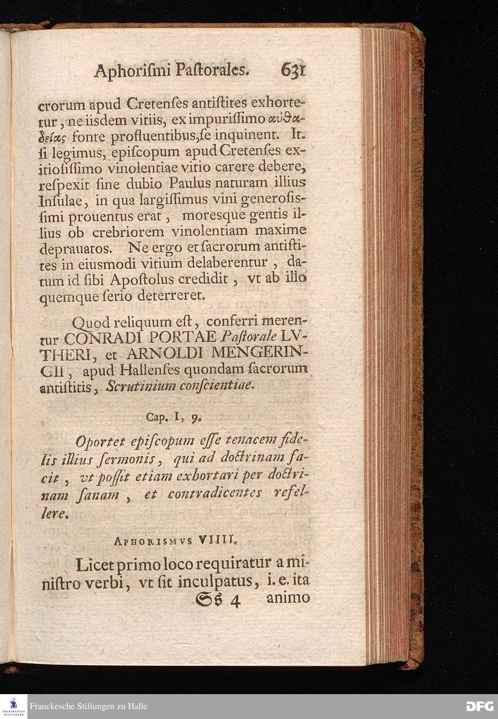 August Herr[!]mann Franckens, Weyl.S.Theol.Prof.Past.Vlric.et Schol. COLLEGIVM PASTORALE über D. IO. LVDOV. HARTMANNI PASTORALE EVANGELICVM. Anderer Theil; Nebst desselben Aus der Epistel an den Titum gezogenen und mit mehrerm erläuterten APHORISMIS PASTORALIBVS: herausgegeben von Gotthilf August Francken S.Theol.Doct.und Prof.Publ.Ord.der ersten Dioeces des Saal-Creyses Insp.und Pr.zur L.Fr. HALLE, In Verlegung des Wäysenhauses, 1743.