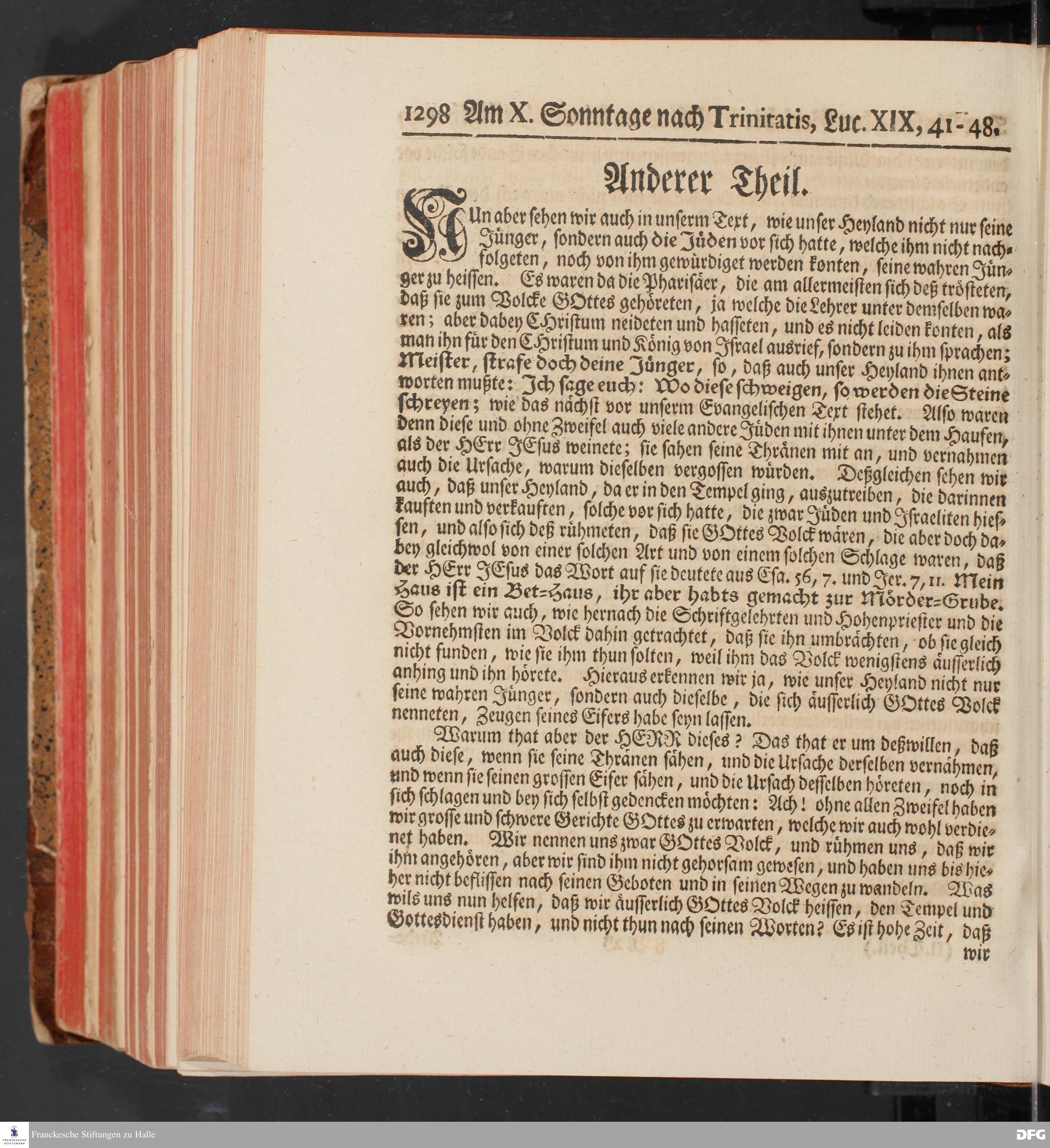 August Hermann Franckens, S.Theol.Prof.und Past. Sonn= und Fest=Tags=Predigten / Welche Theils in Halle, theils an verschiedenen auswärtigen Oertern, von wichtigen und auserlesenen Materien gehalten worden, Nebst Vorbereitung auf die hohen Feste und nützlichen Registern. Dritte Auflage. HALLE, gedruckt und verlegt im Wäysen=Hause MDCCXL. Mit Königl.Preuß.und Churfl.Brandenb.Privileg.