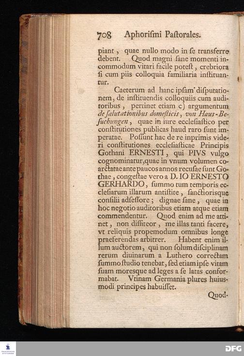 August Herr[!]mann Franckens, Weyl.S.Theol.Prof.Past.Vlric.et Schol. COLLEGIVM PASTORALE über D. IO. LVDOV. HARTMANNI PASTORALE EVANGELICVM. Anderer Theil; Nebst desselben Aus der Epistel an den Titum gezogenen und mit mehrerm erläuterten APHORISMIS PASTORALIBVS: herausgegeben von Gotthilf August Francken S.Theol.Doct.und Prof.Publ.Ord.der ersten Dioeces des Saal-Creyses Insp.und Pr.zur L.Fr. HALLE, In Verlegung des Wäysenhauses, 1743.