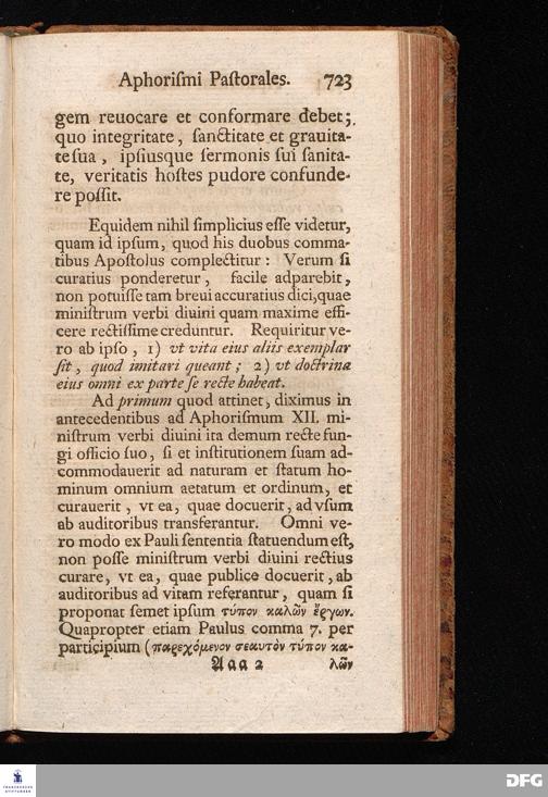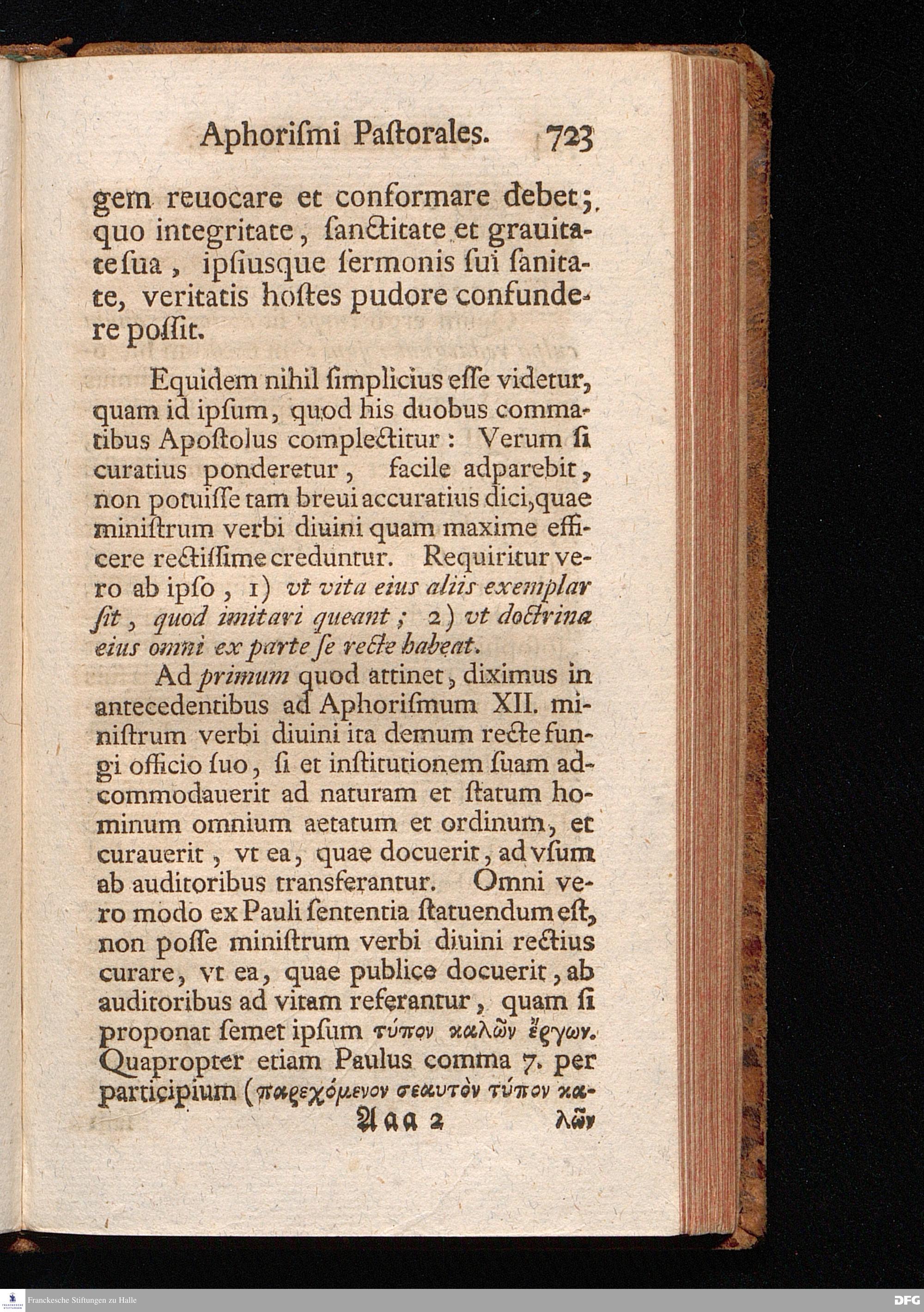 August Herr[!]mann Franckens, Weyl.S.Theol.Prof.Past.Vlric.et Schol. COLLEGIVM PASTORALE über D. IO. LVDOV. HARTMANNI PASTORALE EVANGELICVM. Anderer Theil; Nebst desselben Aus der Epistel an den Titum gezogenen und mit mehrerm erläuterten APHORISMIS PASTORALIBVS: herausgegeben von Gotthilf August Francken S.Theol.Doct.und Prof.Publ.Ord.der ersten Dioeces des Saal-Creyses Insp.und Pr.zur L.Fr. HALLE, In Verlegung des Wäysenhauses, 1743.