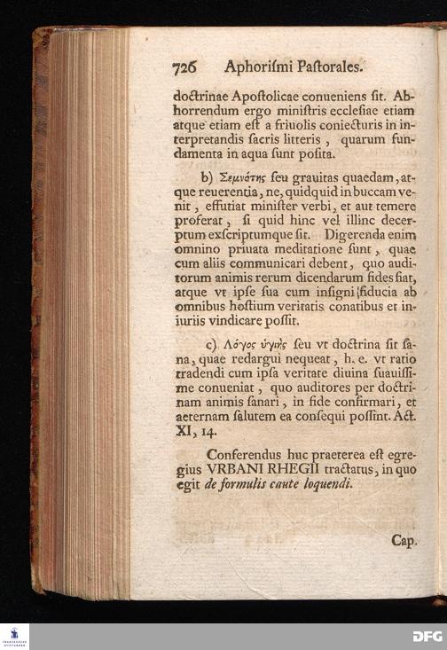 August Herr[!]mann Franckens, Weyl.S.Theol.Prof.Past.Vlric.et Schol. COLLEGIVM PASTORALE über D. IO. LVDOV. HARTMANNI PASTORALE EVANGELICVM. Anderer Theil; Nebst desselben Aus der Epistel an den Titum gezogenen und mit mehrerm erläuterten APHORISMIS PASTORALIBVS: herausgegeben von Gotthilf August Francken S.Theol.Doct.und Prof.Publ.Ord.der ersten Dioeces des Saal-Creyses Insp.und Pr.zur L.Fr. HALLE, In Verlegung des Wäysenhauses, 1743.
