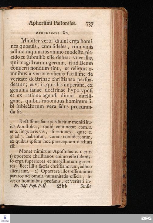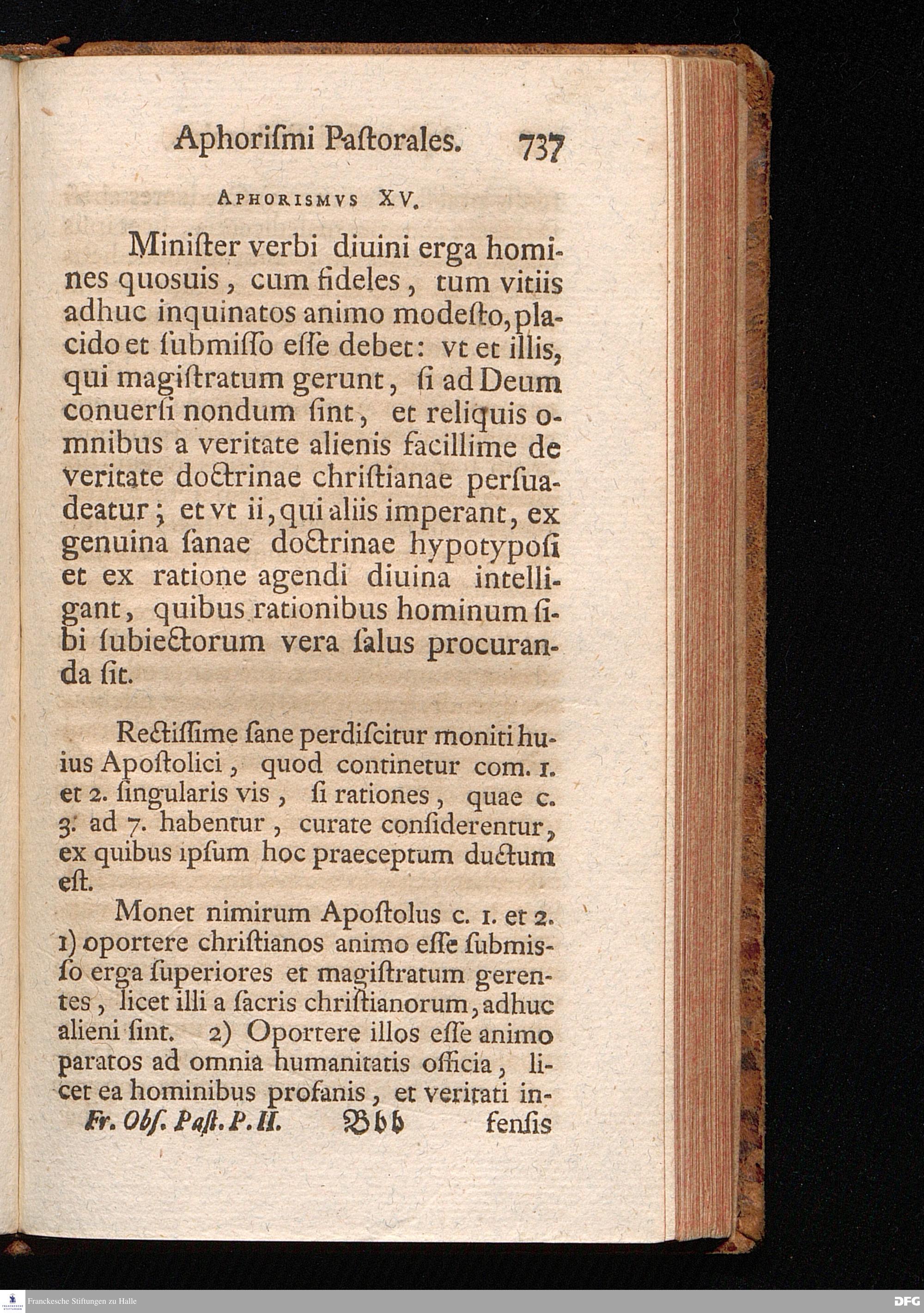 August Herr[!]mann Franckens, Weyl.S.Theol.Prof.Past.Vlric.et Schol. COLLEGIVM PASTORALE über D. IO. LVDOV. HARTMANNI PASTORALE EVANGELICVM. Anderer Theil; Nebst desselben Aus der Epistel an den Titum gezogenen und mit mehrerm erläuterten APHORISMIS PASTORALIBVS: herausgegeben von Gotthilf August Francken S.Theol.Doct.und Prof.Publ.Ord.der ersten Dioeces des Saal-Creyses Insp.und Pr.zur L.Fr. HALLE, In Verlegung des Wäysenhauses, 1743.