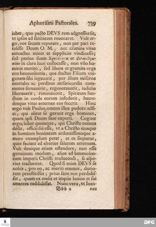 August Herr[!]mann Franckens, Weyl.S.Theol.Prof.Past.Vlric.et Schol. COLLEGIVM PASTORALE über D. IO. LVDOV. HARTMANNI PASTORALE EVANGELICVM. Anderer Theil; Nebst desselben Aus der Epistel an den Titum gezogenen und mit mehrerm erläuterten APHORISMIS PASTORALIBVS: herausgegeben von Gotthilf August Francken S.Theol.Doct.und Prof.Publ.Ord.der ersten Dioeces des Saal-Creyses Insp.und Pr.zur L.Fr. HALLE, In Verlegung des Wäysenhauses, 1743.