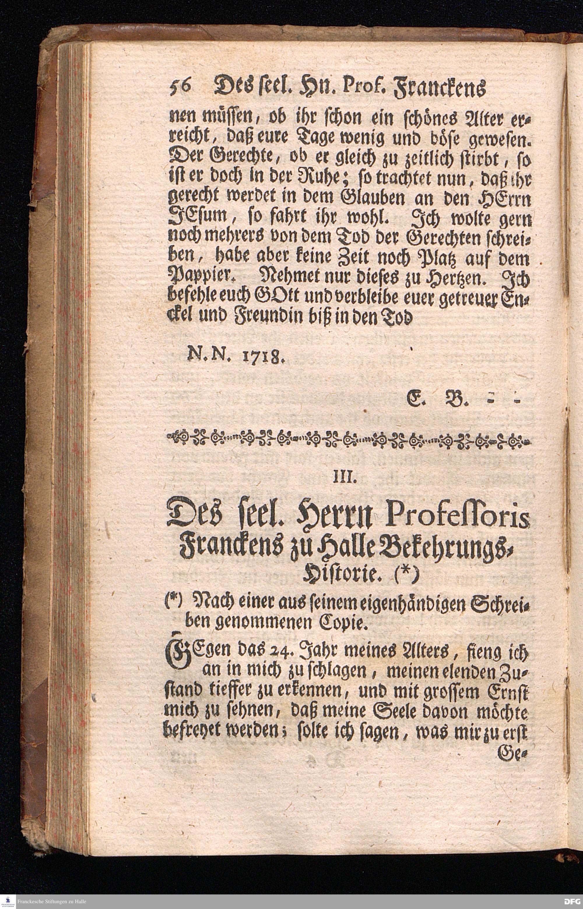 Des seel.[igen] Herrn Professoris Franckens zu Halle Bekehrungs-Historie. Nach einer aus seinem eigenhändigen Schreiben genommenen Copie