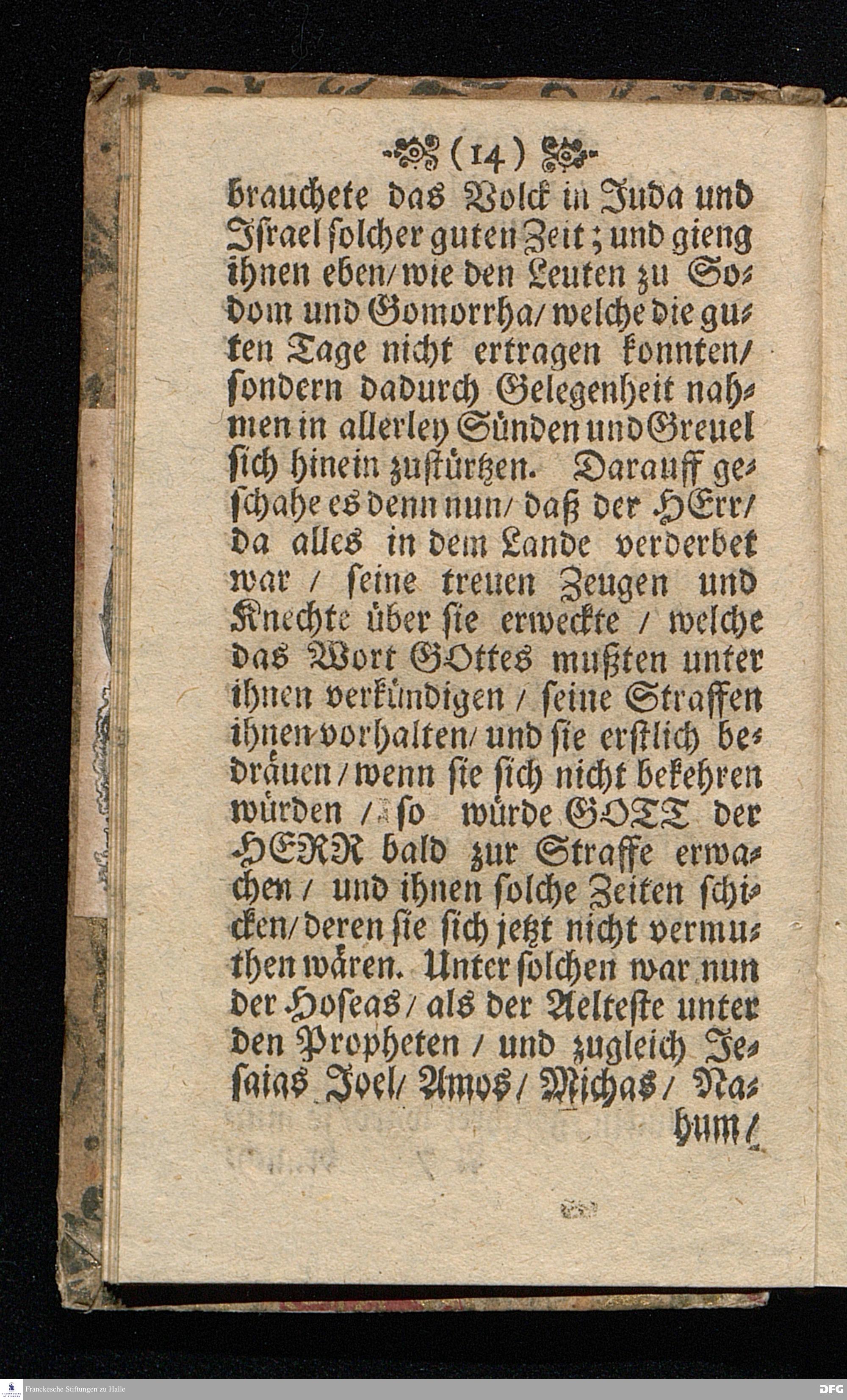 Die Ursachen Gottes zu schelten die so im Lande wohnen / In einer Buß=Predigt Uber Hos.IV,I. d.7.October 1698, In der St.Georgen=Kirche zu Glaucha an Halle vorgestellet von M.August Hermann Francken / SS.Theol.Gr.& OO.LL.P.Ord.& P.Glauch. HALLE / Gedruckt bey Christ.Henckel / 1698.