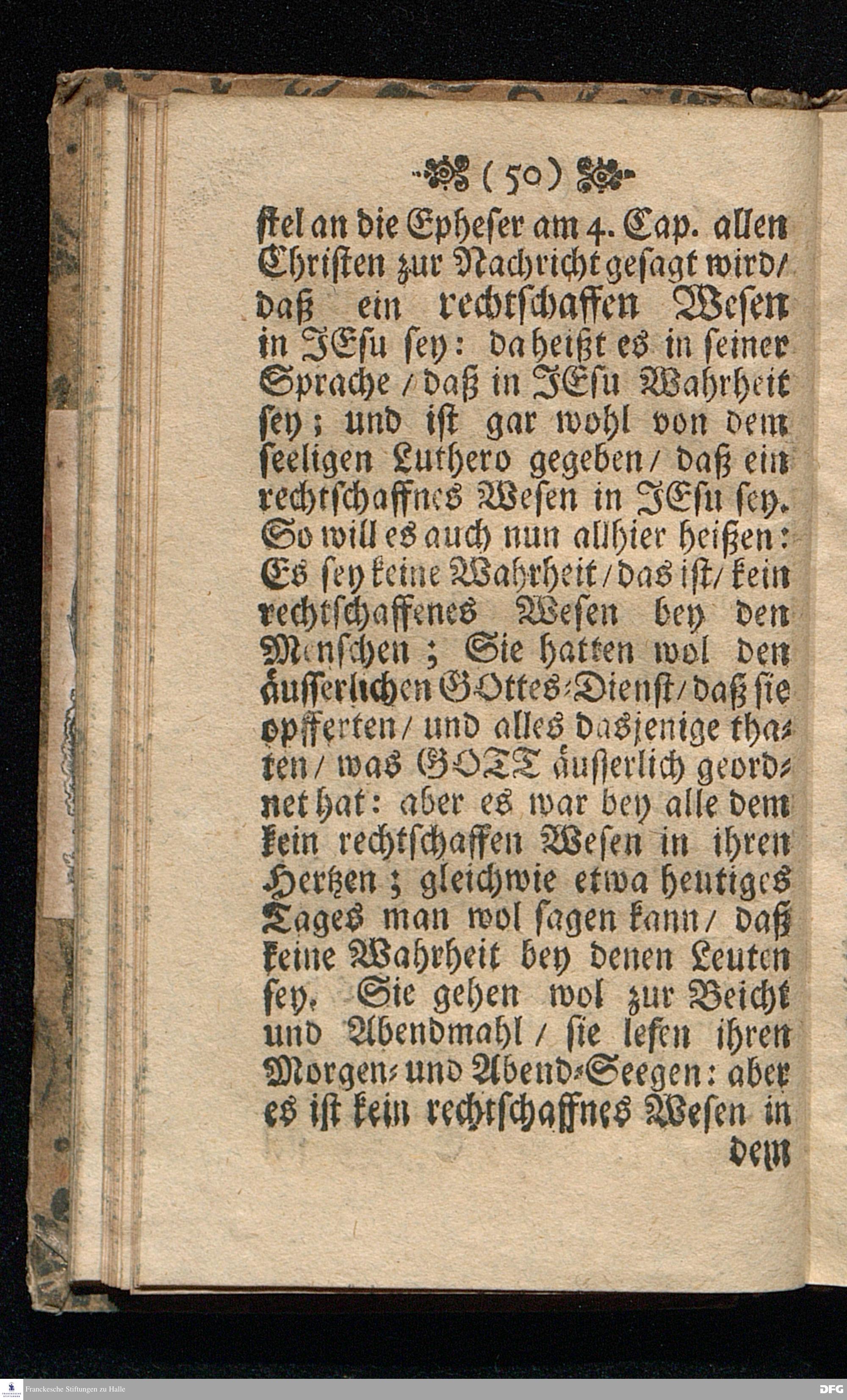 Die Ursachen Gottes zu schelten die so im Lande wohnen / In einer Buß=Predigt Uber Hos.IV,I. d.7.October 1698, In der St.Georgen=Kirche zu Glaucha an Halle vorgestellet von M.August Hermann Francken / SS.Theol.Gr.& OO.LL.P.Ord.& P.Glauch. HALLE / Gedruckt bey Christ.Henckel / 1698.