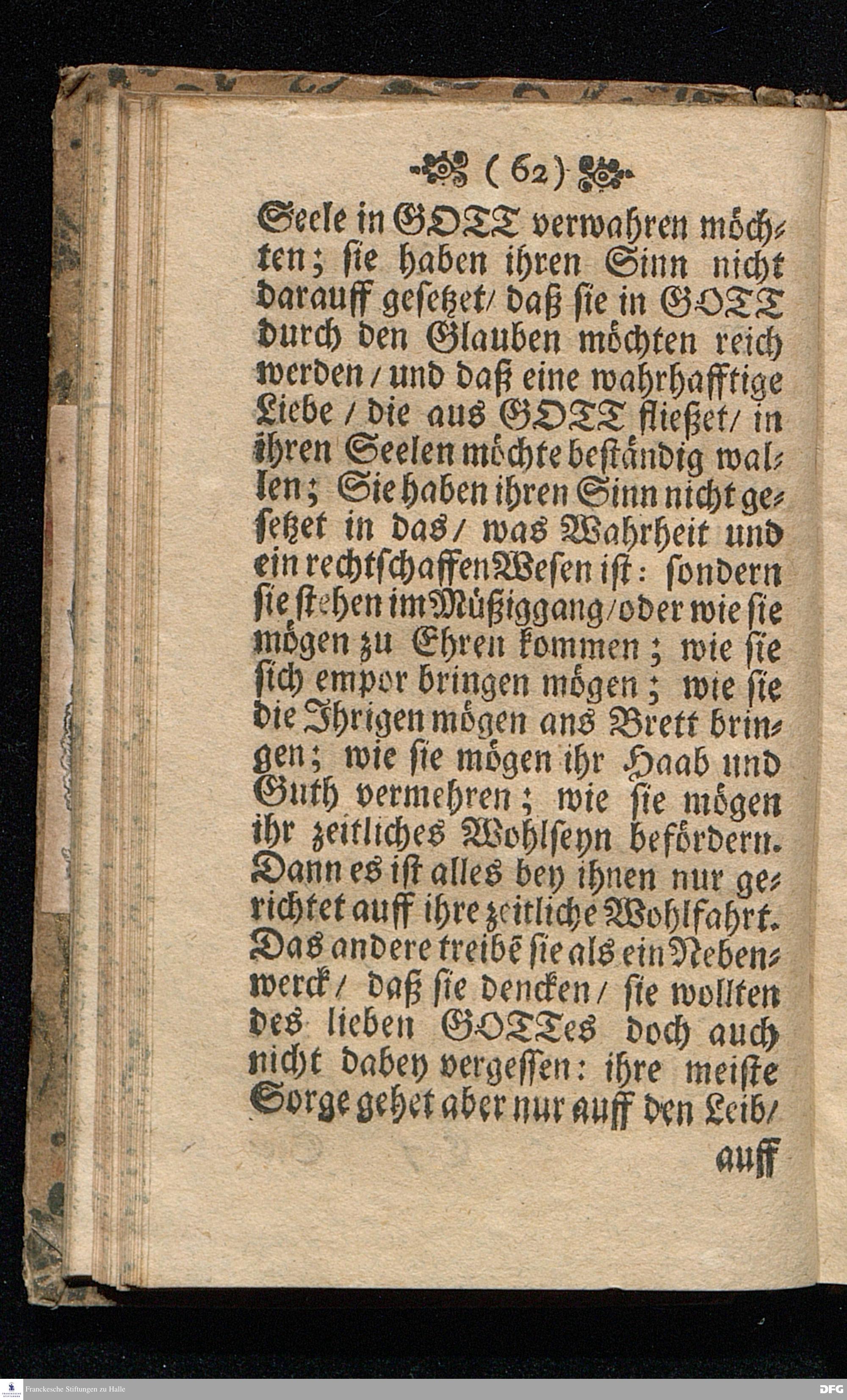 Die Ursachen Gottes zu schelten die so im Lande wohnen / In einer Buß=Predigt Uber Hos.IV,I. d.7.October 1698, In der St.Georgen=Kirche zu Glaucha an Halle vorgestellet von M.August Hermann Francken / SS.Theol.Gr.& OO.LL.P.Ord.& P.Glauch. HALLE / Gedruckt bey Christ.Henckel / 1698.