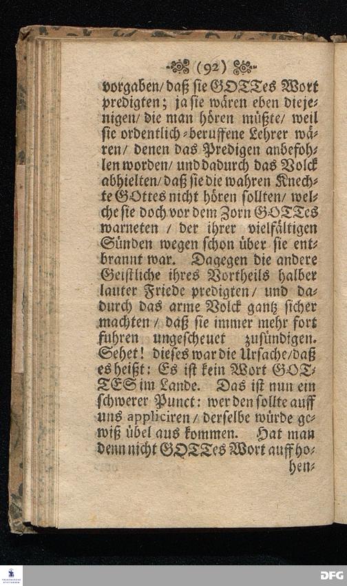 Die Ursachen Gottes zu schelten die so im Lande wohnen / In einer Buß=Predigt Uber Hos.IV,I. d.7.October 1698, In der St.Georgen=Kirche zu Glaucha an Halle vorgestellet von M.August Hermann Francken / SS.Theol.Gr.& OO.LL.P.Ord.& P.Glauch. HALLE / Gedruckt bey Christ.Henckel / 1698.