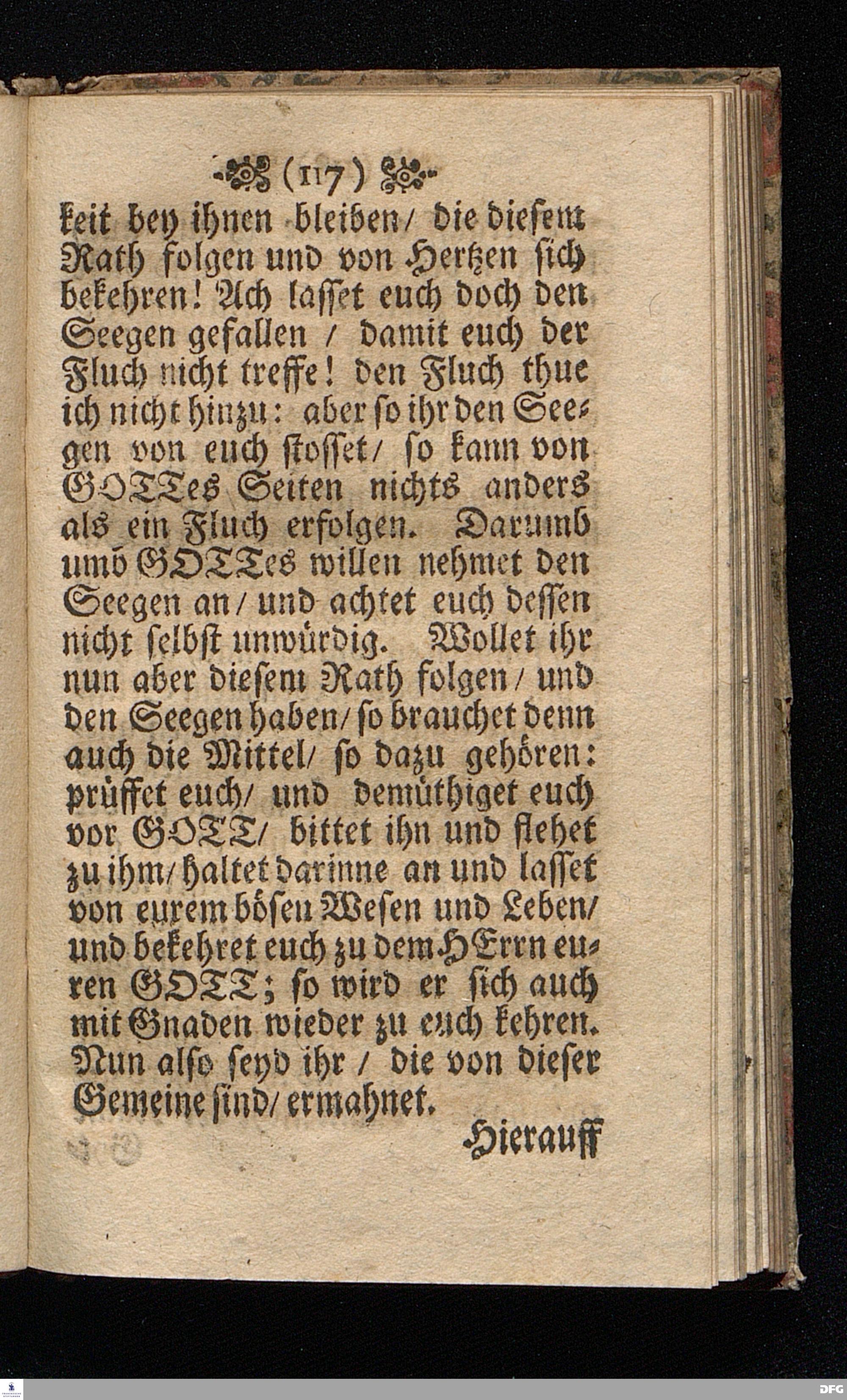Die Ursachen Gottes zu schelten die so im Lande wohnen / In einer Buß=Predigt Uber Hos.IV,I. d.7.October 1698, In der St.Georgen=Kirche zu Glaucha an Halle vorgestellet von M.August Hermann Francken / SS.Theol.Gr.& OO.LL.P.Ord.& P.Glauch. HALLE / Gedruckt bey Christ.Henckel / 1698.