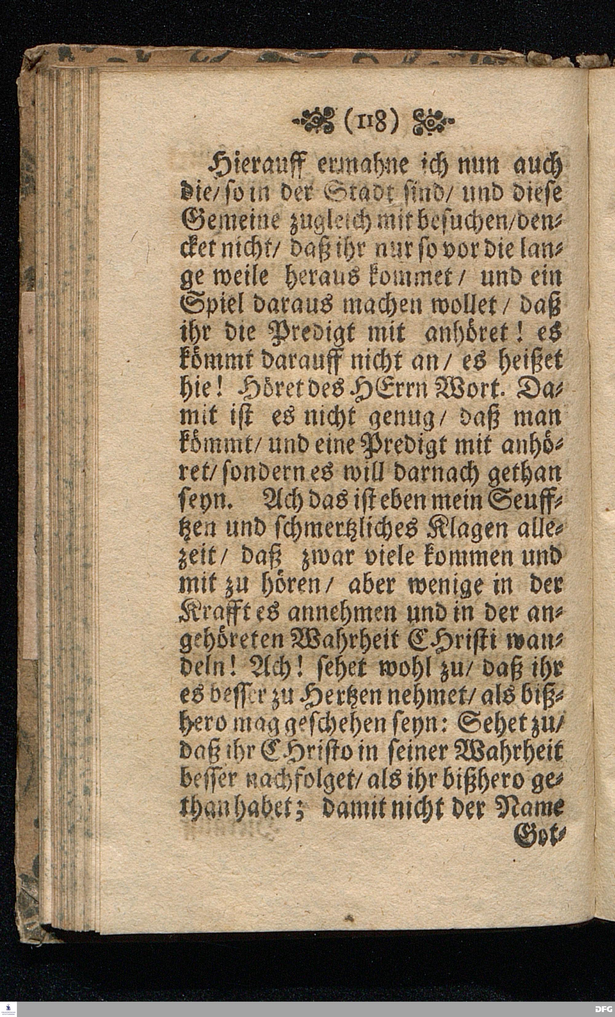 Die Ursachen Gottes zu schelten die so im Lande wohnen / In einer Buß=Predigt Uber Hos.IV,I. d.7.October 1698, In der St.Georgen=Kirche zu Glaucha an Halle vorgestellet von M.August Hermann Francken / SS.Theol.Gr.& OO.LL.P.Ord.& P.Glauch. HALLE / Gedruckt bey Christ.Henckel / 1698.