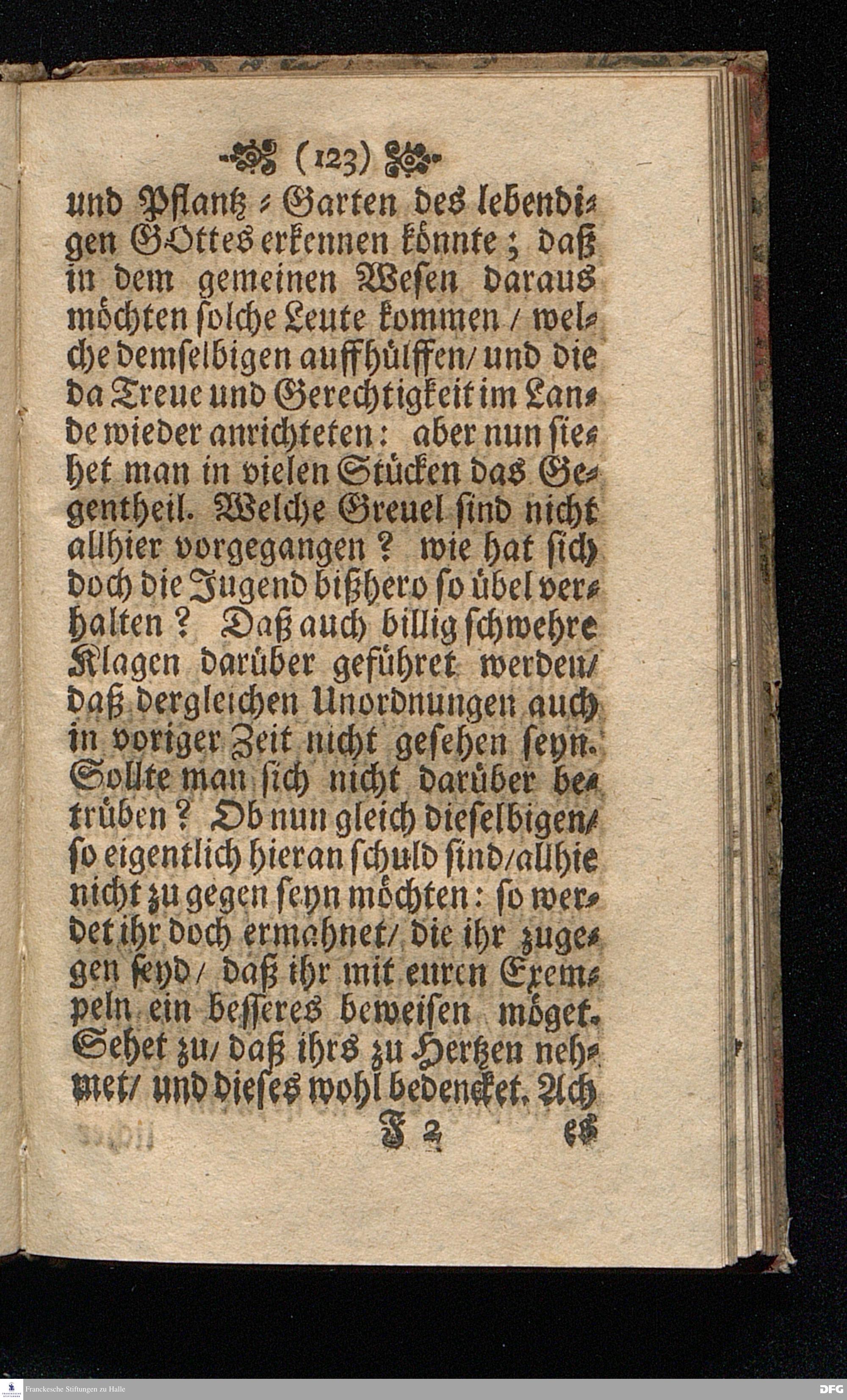 Die Ursachen Gottes zu schelten die so im Lande wohnen / In einer Buß=Predigt Uber Hos.IV,I. d.7.October 1698, In der St.Georgen=Kirche zu Glaucha an Halle vorgestellet von M.August Hermann Francken / SS.Theol.Gr.& OO.LL.P.Ord.& P.Glauch. HALLE / Gedruckt bey Christ.Henckel / 1698.