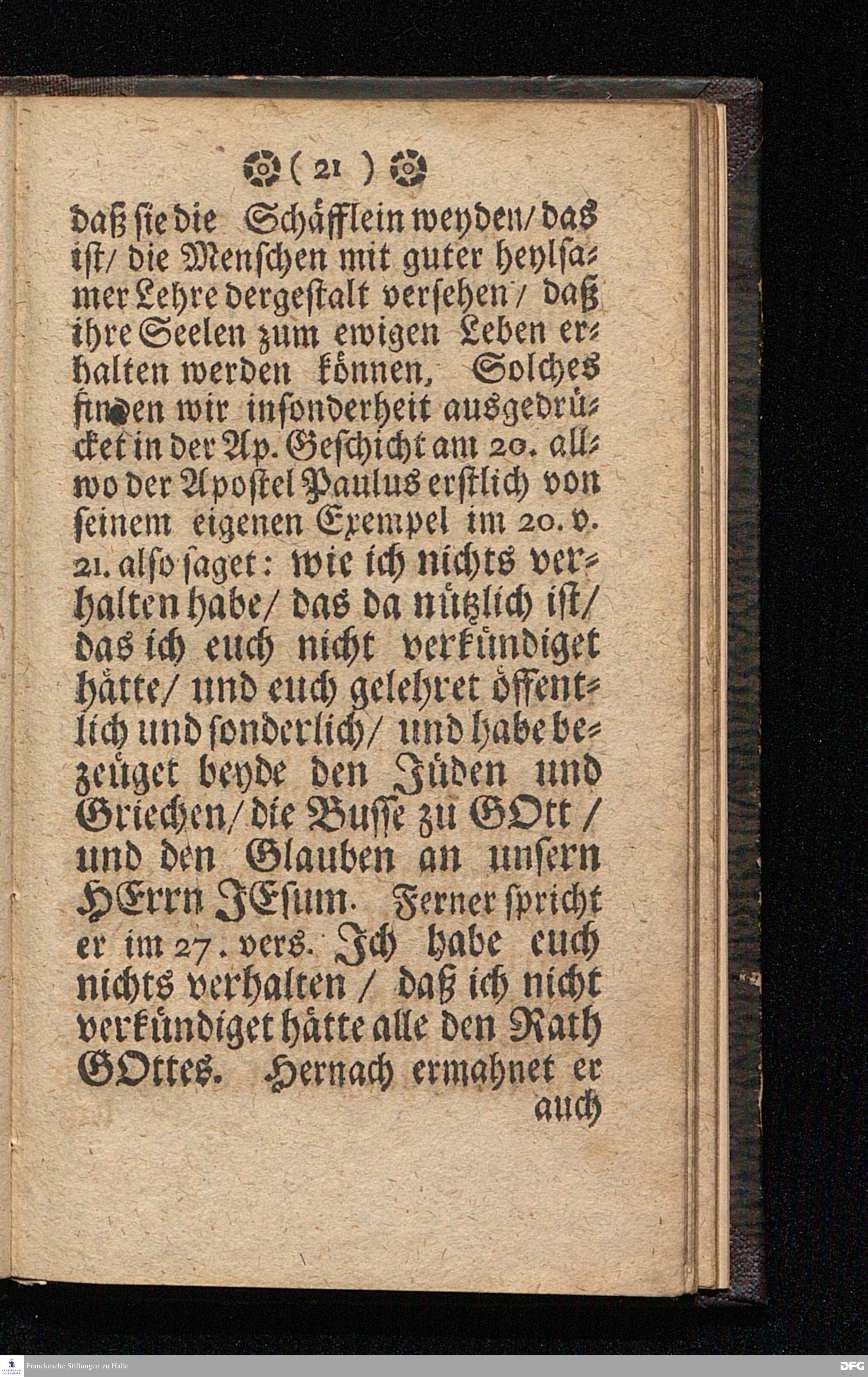 Der Dienst getreüer Lehrer nach dem Vorbilde CHristi. Am Sonntage MISERICORDIAS DOMINI Anno 1699. In einer Predigt Uber das Evangelium Joh.X, v.12--16. In der St.Georgen=Kirche zu Glaucha an Halle vorgestellet / von M.August Hermann Francken / SS.Theol.P.Ord.& P.Glauch. HALLE / Druckts Chr.Henckel / U.B. 1700.