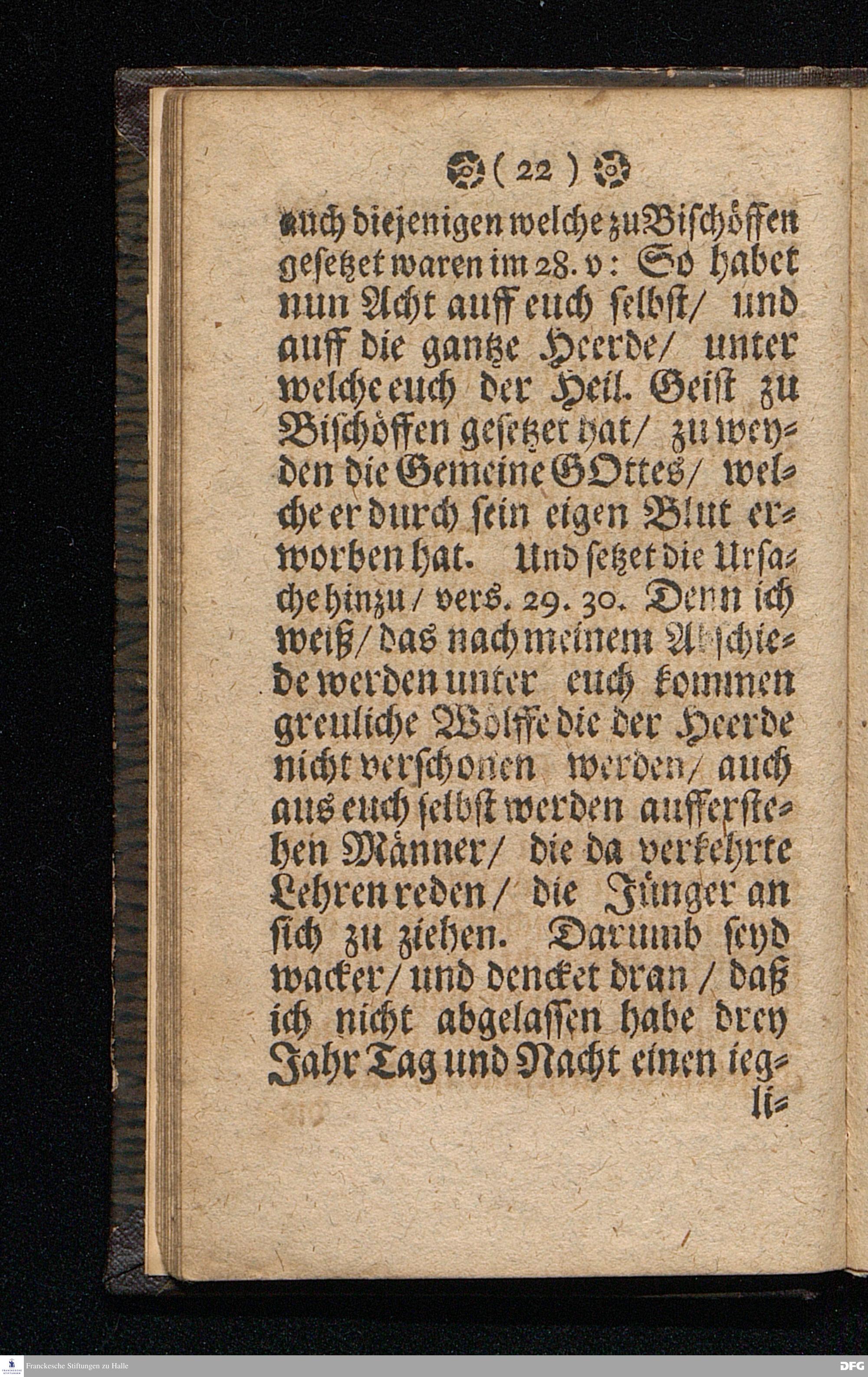Der Dienst getreüer Lehrer nach dem Vorbilde CHristi. Am Sonntage MISERICORDIAS DOMINI Anno 1699. In einer Predigt Uber das Evangelium Joh.X, v.12--16. In der St.Georgen=Kirche zu Glaucha an Halle vorgestellet / von M.August Hermann Francken / SS.Theol.P.Ord.& P.Glauch. HALLE / Druckts Chr.Henckel / U.B. 1700.