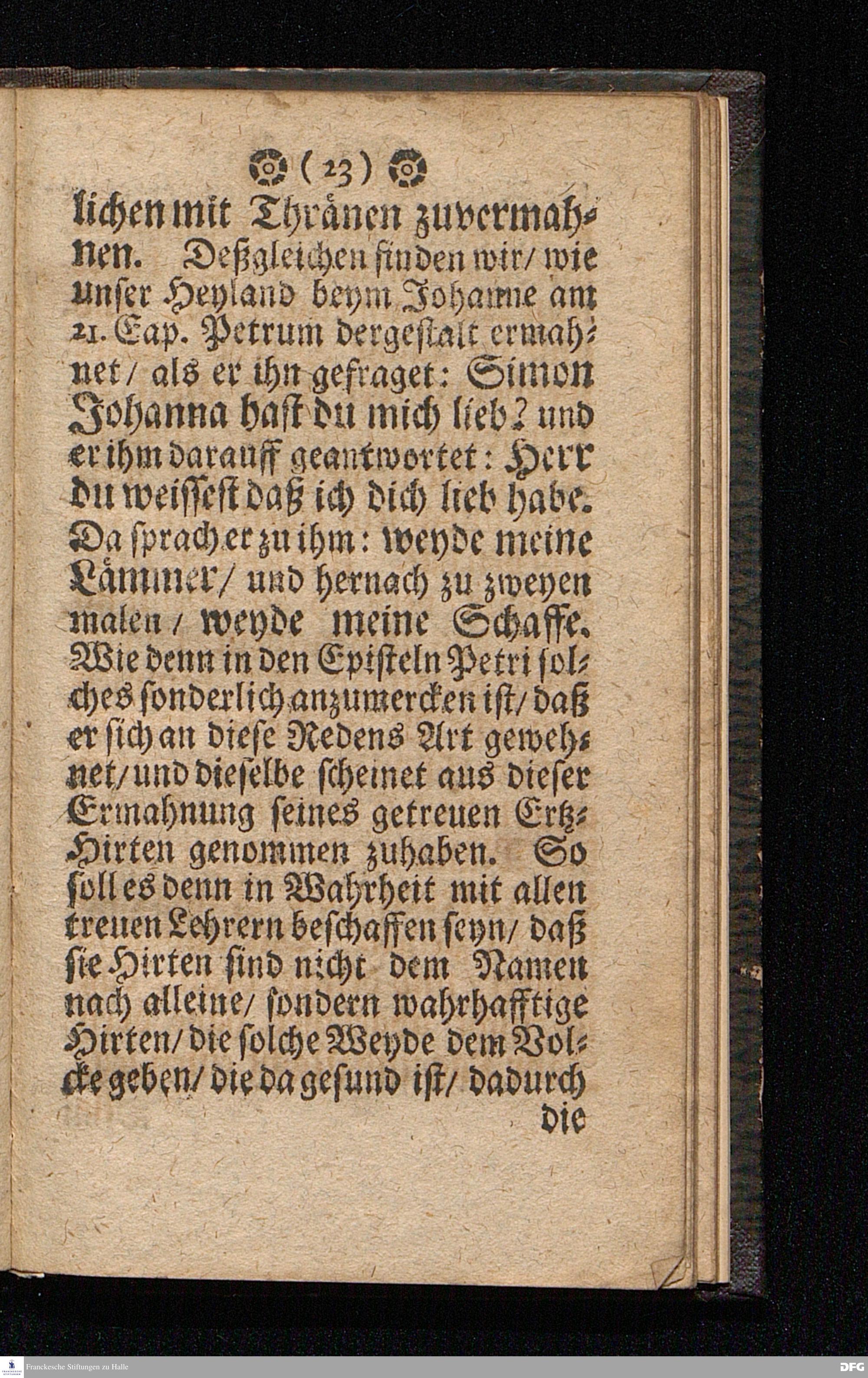 Der Dienst getreüer Lehrer nach dem Vorbilde CHristi. Am Sonntage MISERICORDIAS DOMINI Anno 1699. In einer Predigt Uber das Evangelium Joh.X, v.12--16. In der St.Georgen=Kirche zu Glaucha an Halle vorgestellet / von M.August Hermann Francken / SS.Theol.P.Ord.& P.Glauch. HALLE / Druckts Chr.Henckel / U.B. 1700.