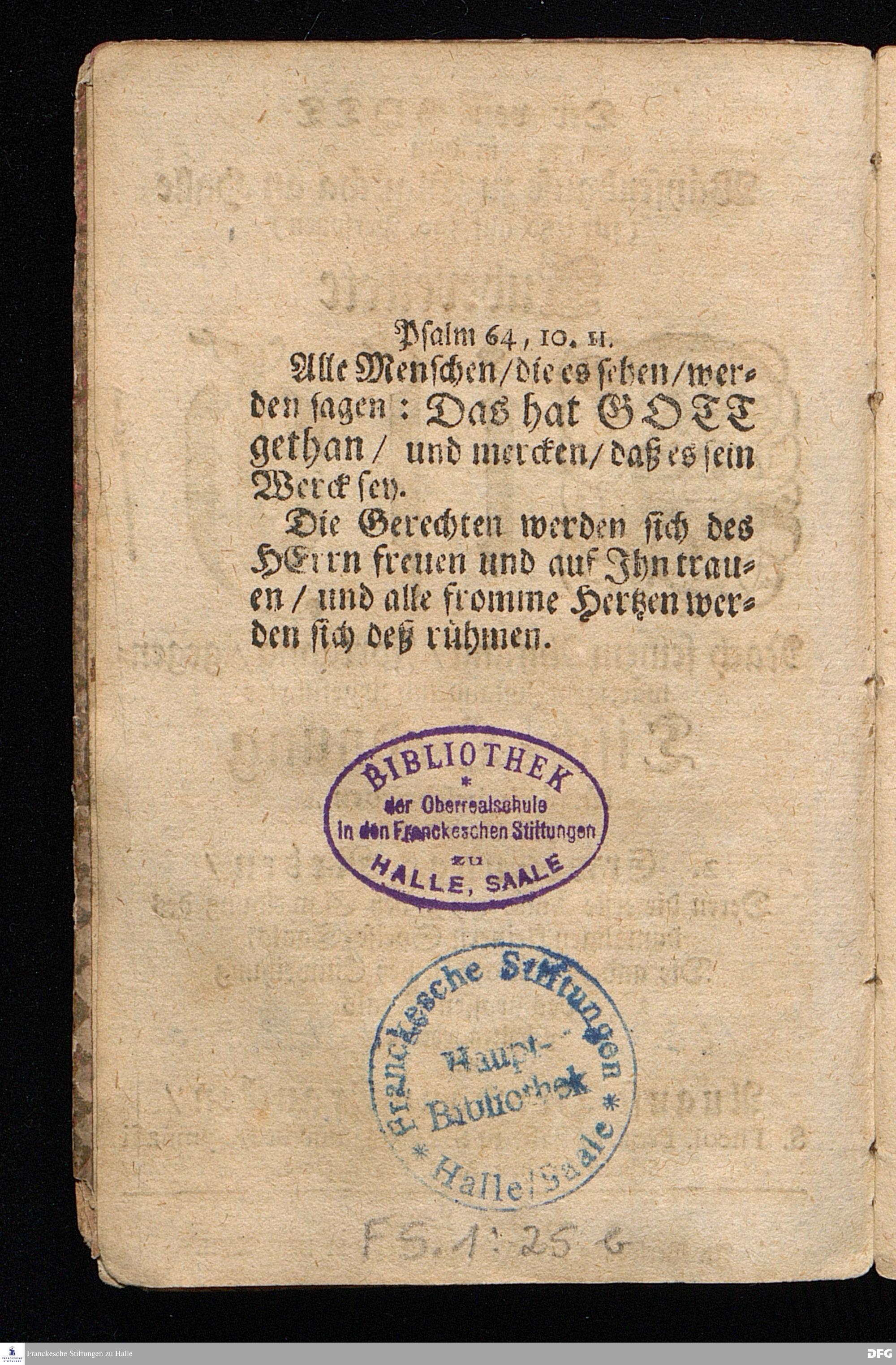 Der von GOTT in dem Wäysenhause zu Glaucha an Halle (für ietzo auf 500. Personen) Zubereitete Tisch / Nach seinem Anfang / Fortgang / gegenwärtigem Zustand und eingeführter Tisch=Ordnung kürtzlich beschrieben, mit angehängten 2. Erweckungs Reden / Deren die erste Anno 1699. [vielmehr 1700!] bey Einweihung des damaligen kleinern Speise=Saals, Die andere Anno 1711. bey Einweihung des grossen Saals gehalten worden, von August Hermann Francken / S.Theol.Prof.& Past.zu S.Ulrich / und des Gymnasii Scholarcha, h.t. Acad.Pro-Rectore. HALLE, In Verlegung des Wäysenhauses, MDCCXVII.