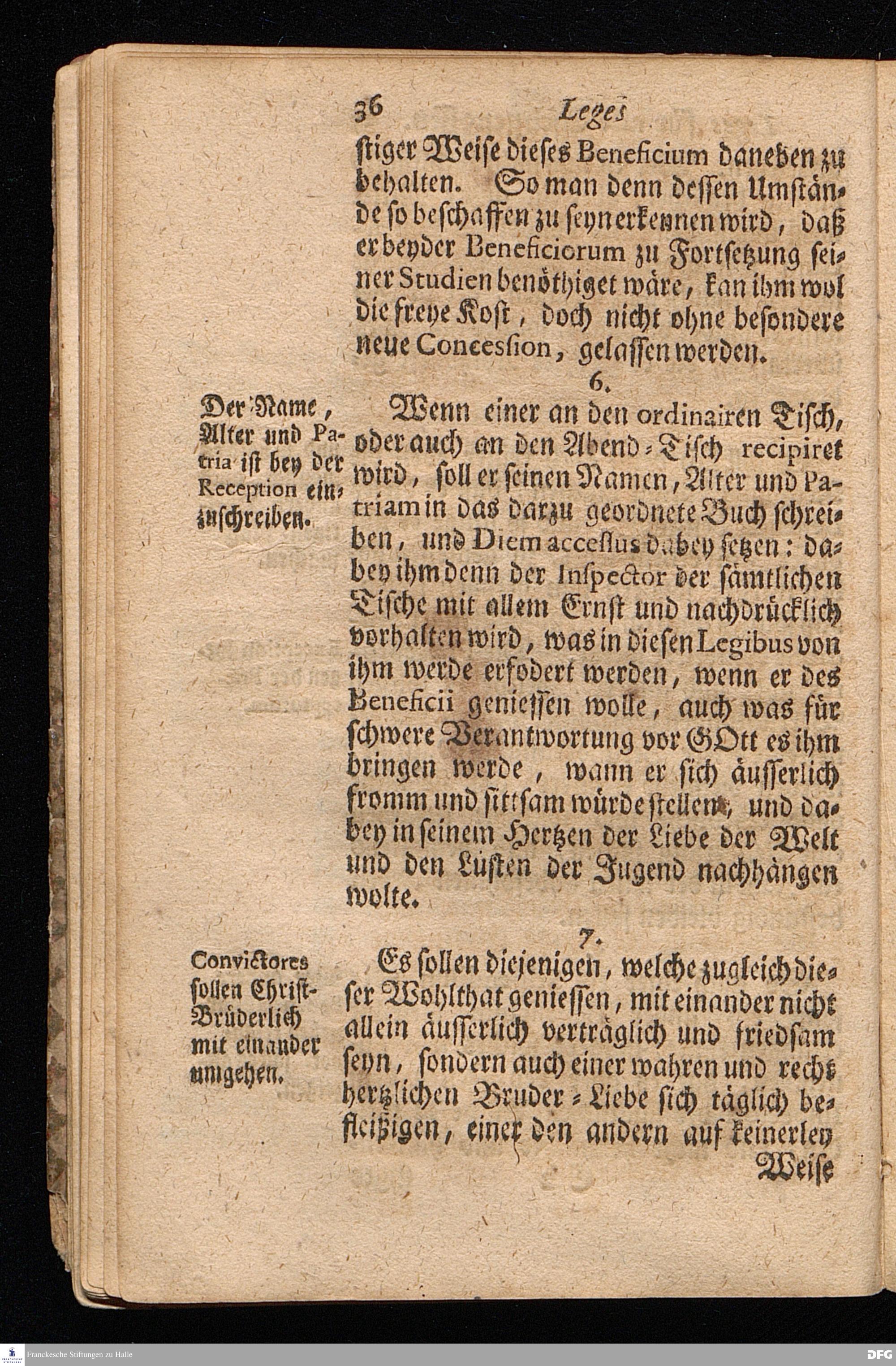 Der von GOTT in dem Wäysenhause zu Glaucha an Halle (für ietzo auf 500. Personen) Zubereitete Tisch / Nach seinem Anfang / Fortgang / gegenwärtigem Zustand und eingeführter Tisch=Ordnung kürtzlich beschrieben, mit angehängten 2. Erweckungs Reden / Deren die erste Anno 1699. [vielmehr 1700!] bey Einweihung des damaligen kleinern Speise=Saals, Die andere Anno 1711. bey Einweihung des grossen Saals gehalten worden, von August Hermann Francken / S.Theol.Prof.& Past.zu S.Ulrich / und des Gymnasii Scholarcha, h.t. Acad.Pro-Rectore. HALLE, In Verlegung des Wäysenhauses, MDCCXVII.