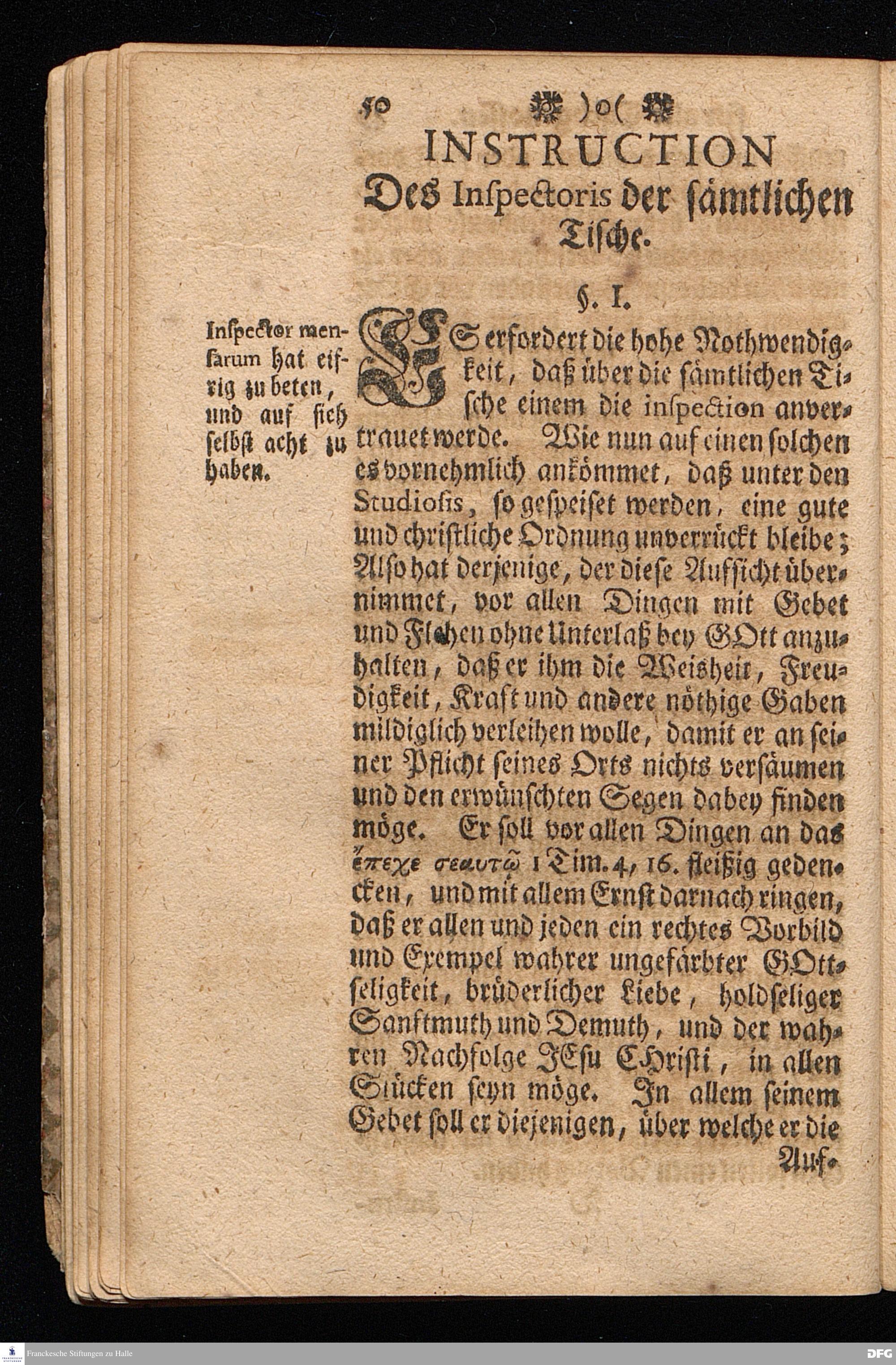 Der von GOTT in dem Wäysenhause zu Glaucha an Halle (für ietzo auf 500. Personen) Zubereitete Tisch / Nach seinem Anfang / Fortgang / gegenwärtigem Zustand und eingeführter Tisch=Ordnung kürtzlich beschrieben, mit angehängten 2. Erweckungs Reden / Deren die erste Anno 1699. [vielmehr 1700!] bey Einweihung des damaligen kleinern Speise=Saals, Die andere Anno 1711. bey Einweihung des grossen Saals gehalten worden, von August Hermann Francken / S.Theol.Prof.& Past.zu S.Ulrich / und des Gymnasii Scholarcha, h.t. Acad.Pro-Rectore. HALLE, In Verlegung des Wäysenhauses, MDCCXVII.
